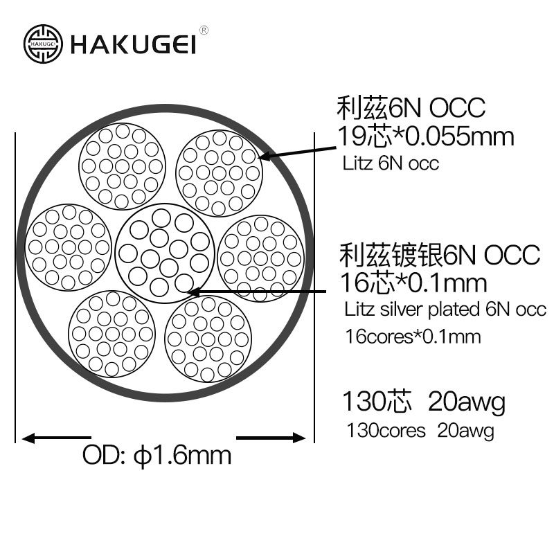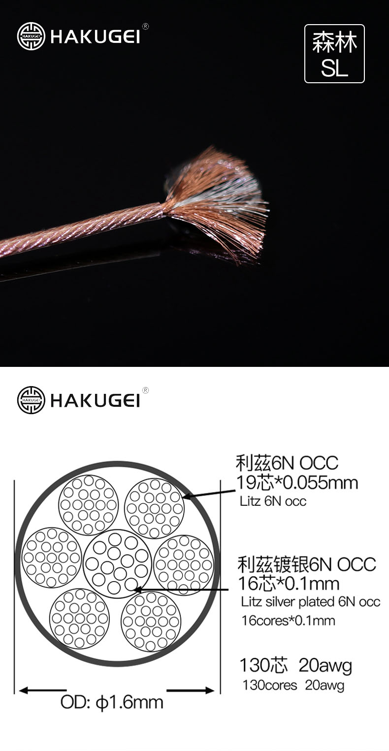 Hakugei Forest 6N Монокристаллическая медная и лизитская серебро 6N Монокристаллический медиул -кабель меди