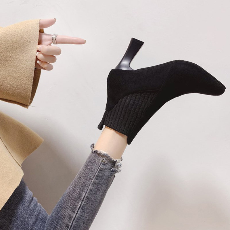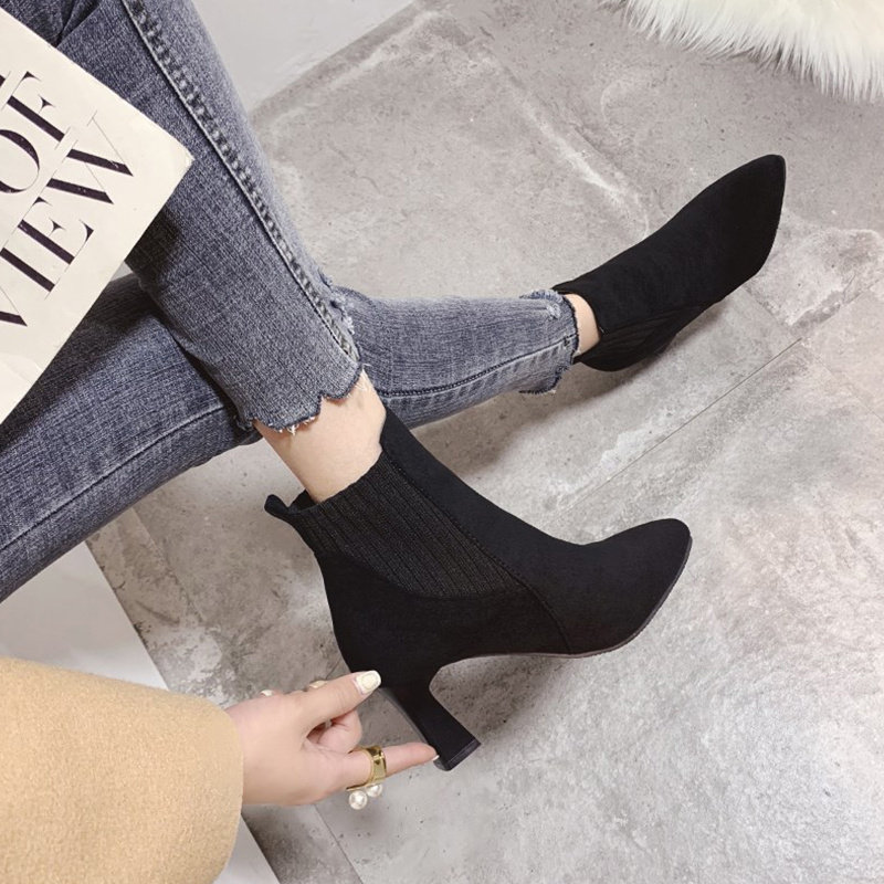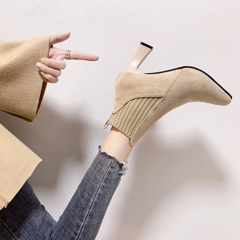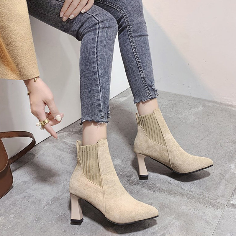 Демисезонные носки с заостренным носом, эластичные короткие сапоги на высоком каблуке, коллекция 2021, популярно в интернете