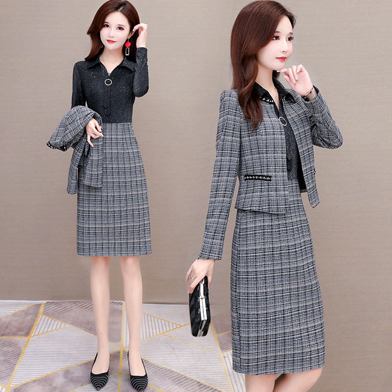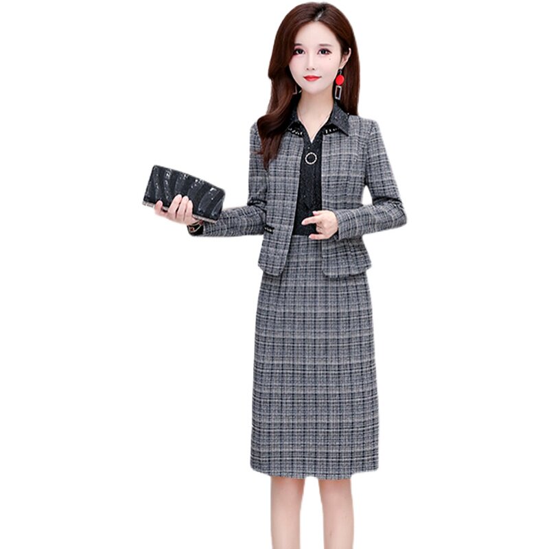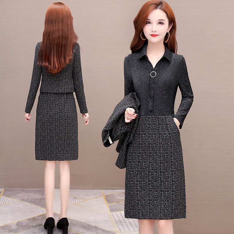 Осеннее платье, демисезонный комплект, в стиле Шанель, коллекция 2022, городской стиль, увеличенная толщина, яркий броский стиль