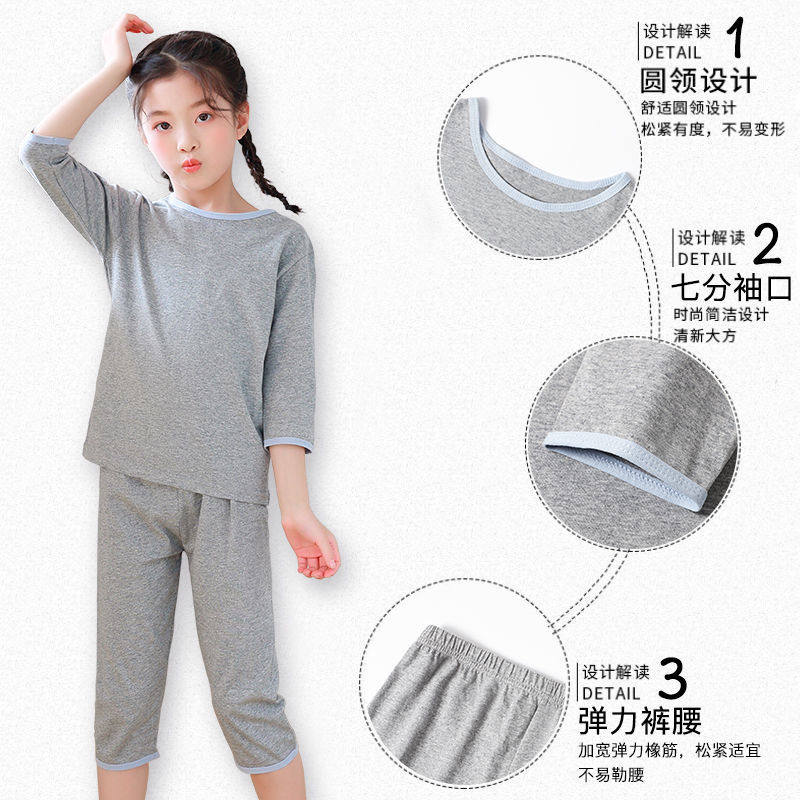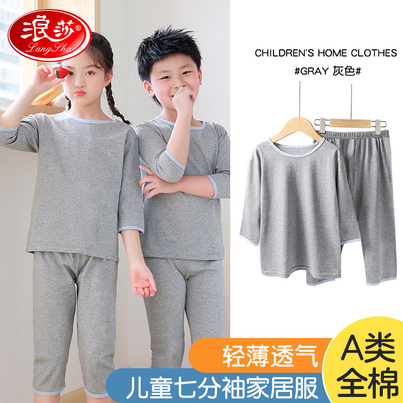 浪莎 Детская летняя тонкая осенняя пижама для мальчиков, хлопковый детский комплект, подходит для подростков