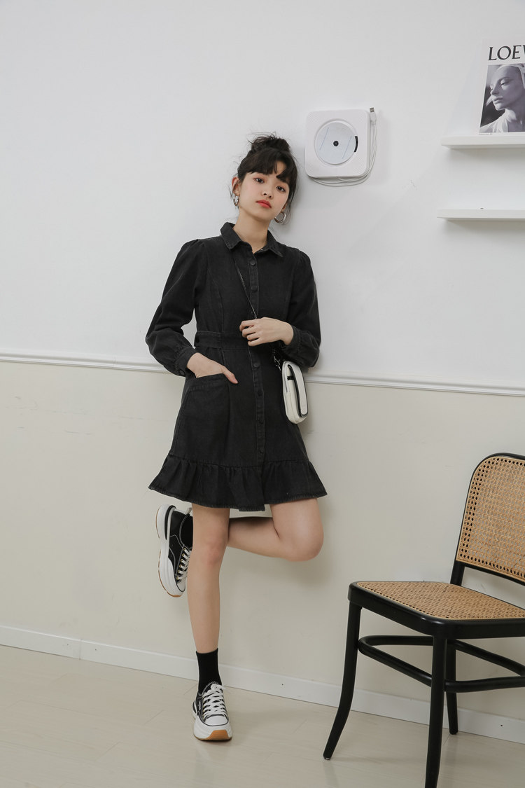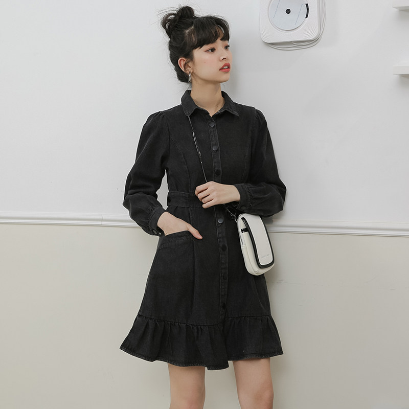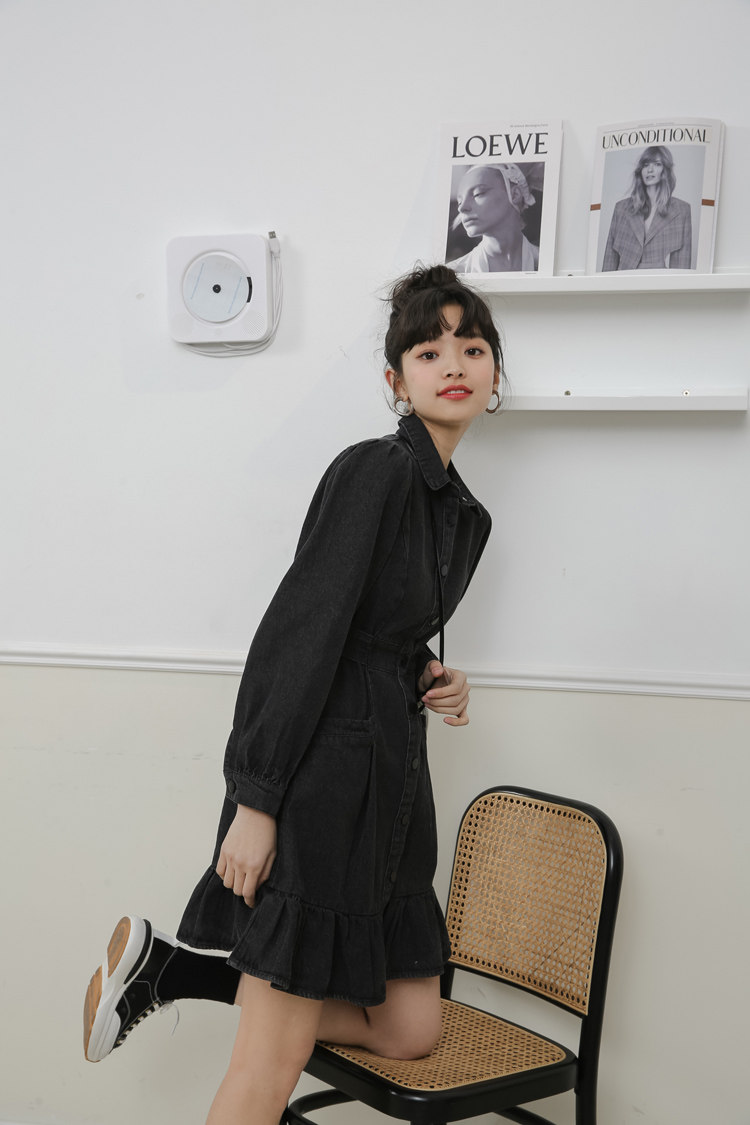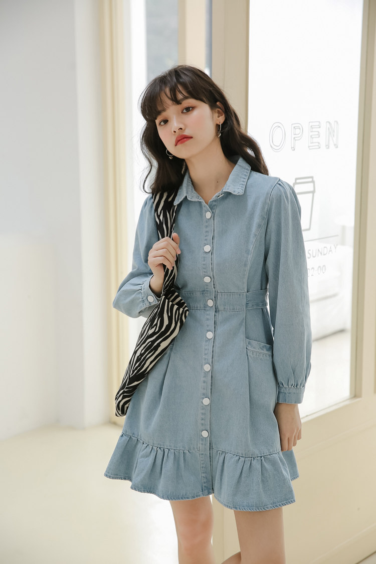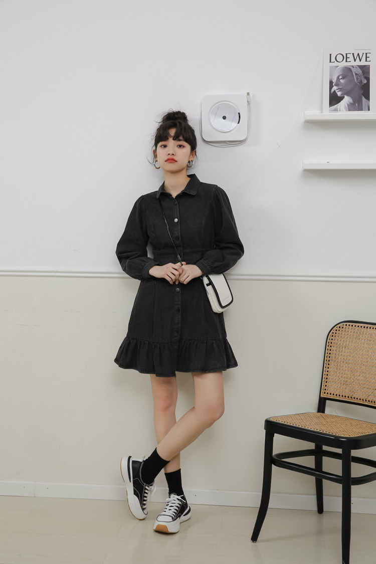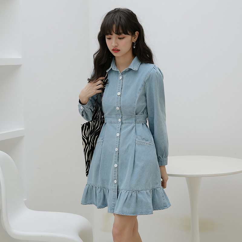 Весенний корсет, лонгслив, джинсовое платье, джинсовая юбка, подходит для подростков, воротник поло