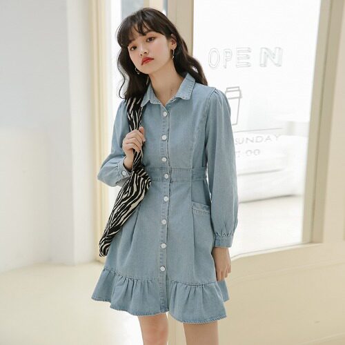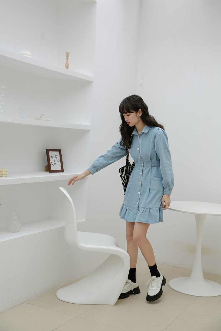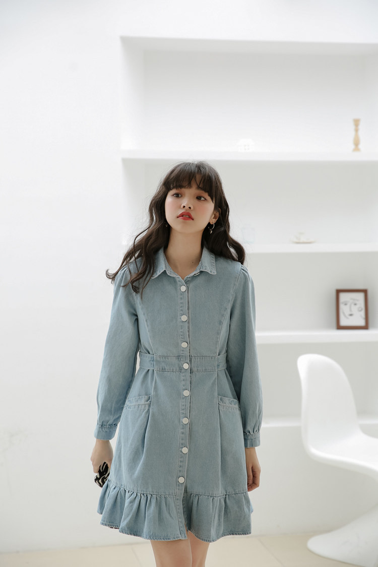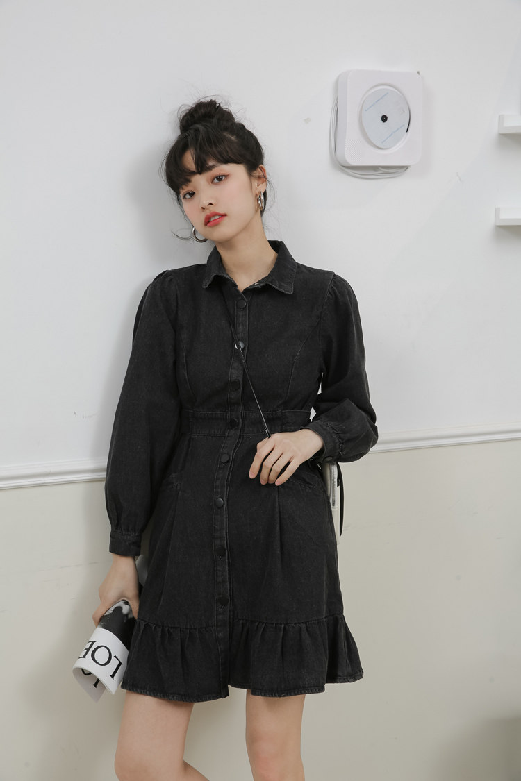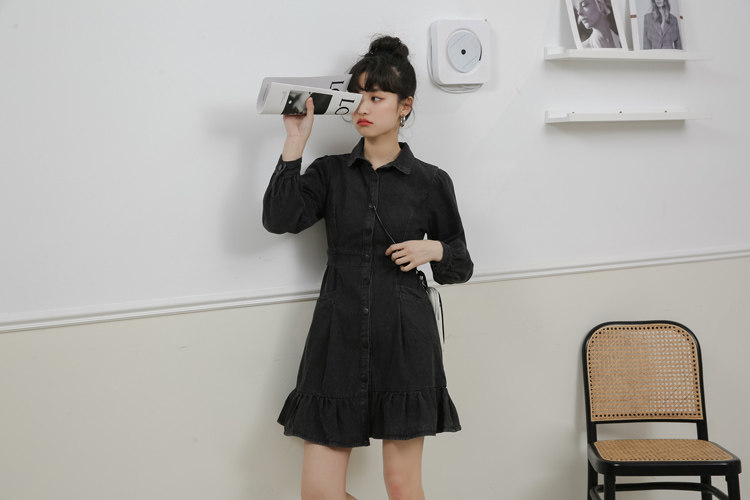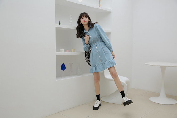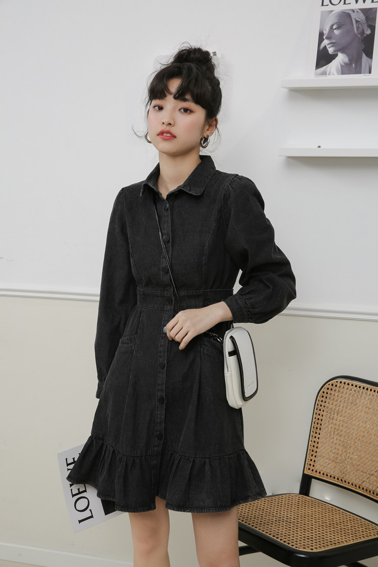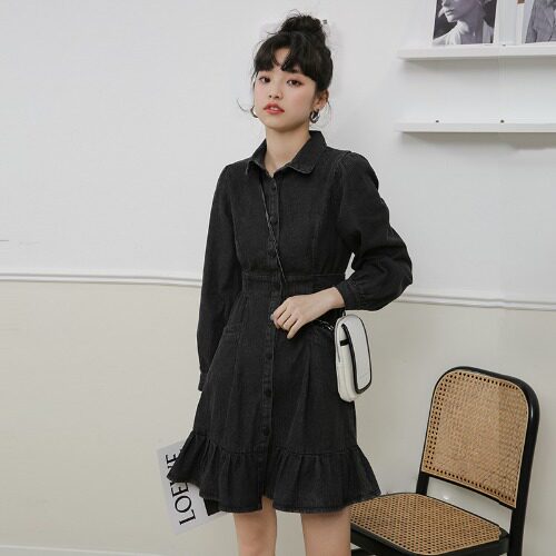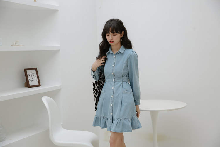 Весенний корсет, лонгслив, джинсовое платье, джинсовая юбка, подходит для подростков, воротник поло