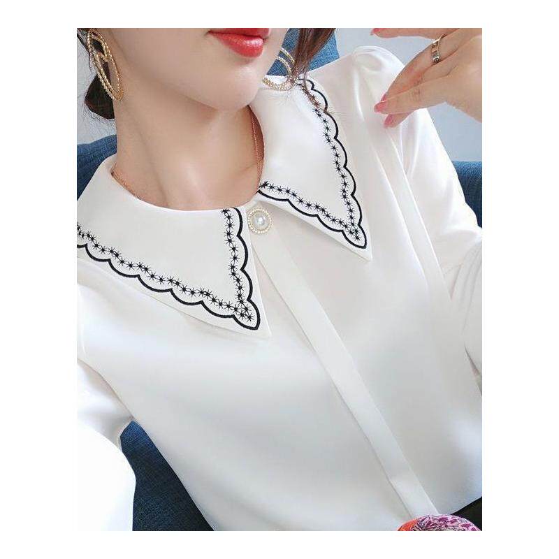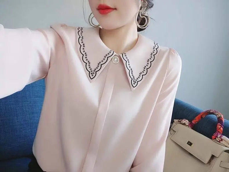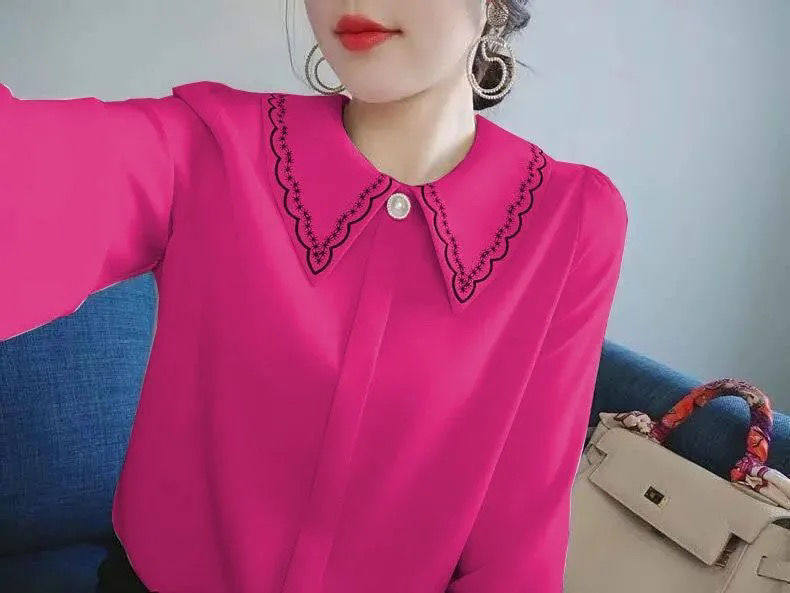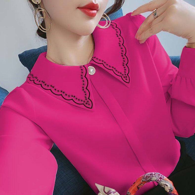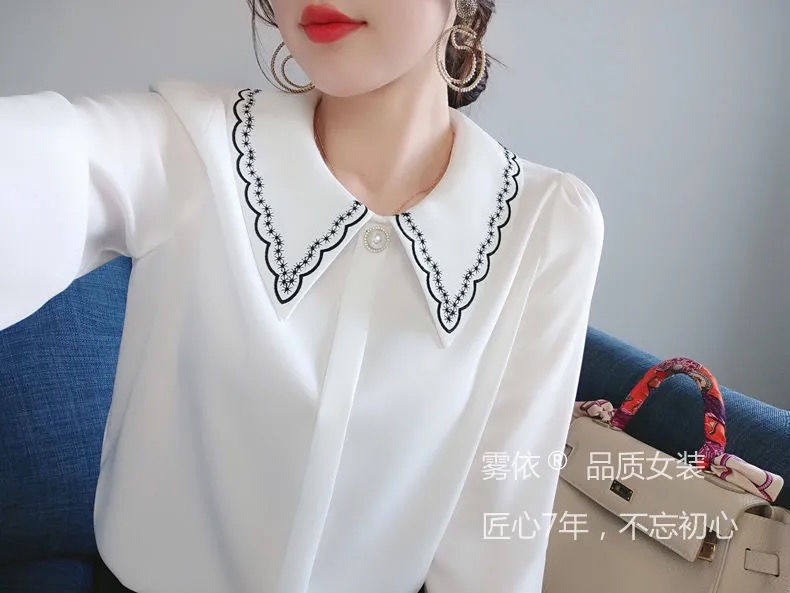 Рубашка, дизайнерский шифоновый комфортный лонгслив, коллекция 2023, с вышивкой, тренд сезона, в западном стиле