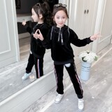 Детский комплект, универсальный бархатный спортивный костюм для отдыха, популярно в интернете, в западном стиле