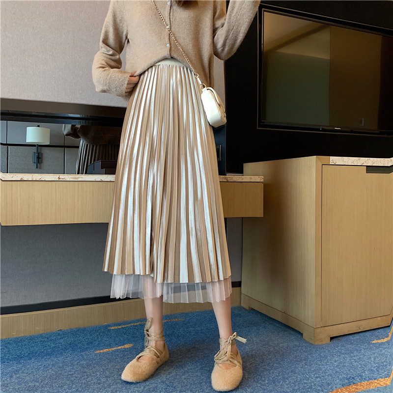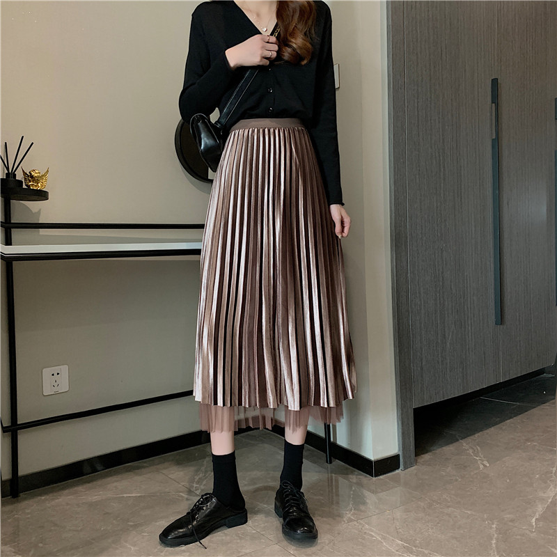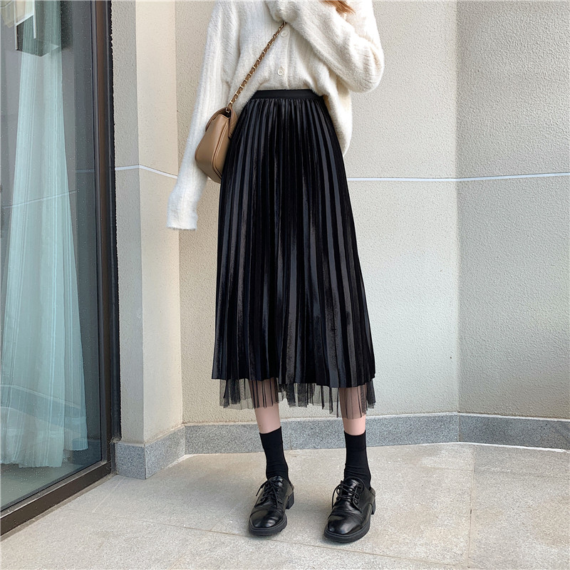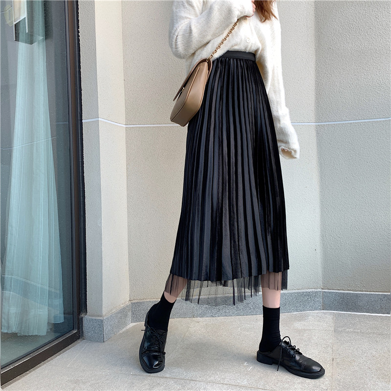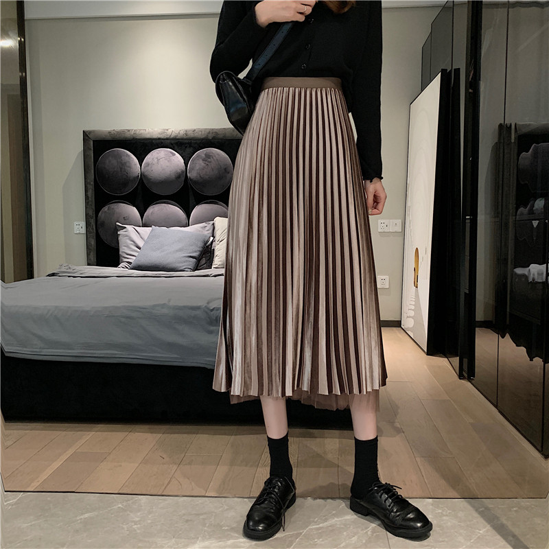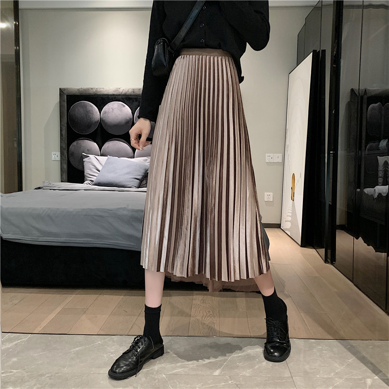 Бархатная длинная весенняя юбка в складку, длина миди, высокая талия, А-силуэт