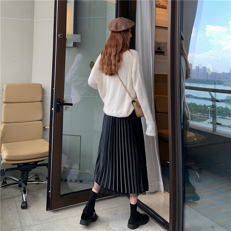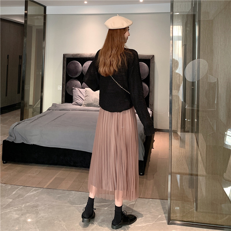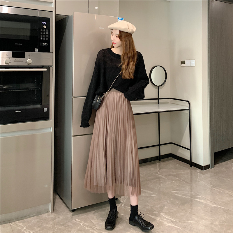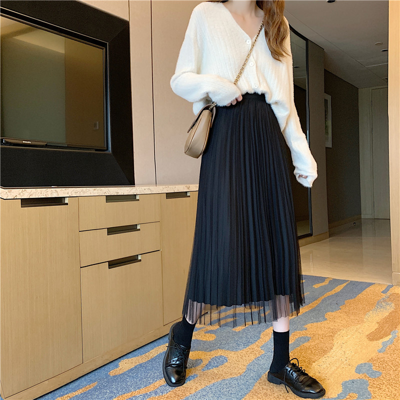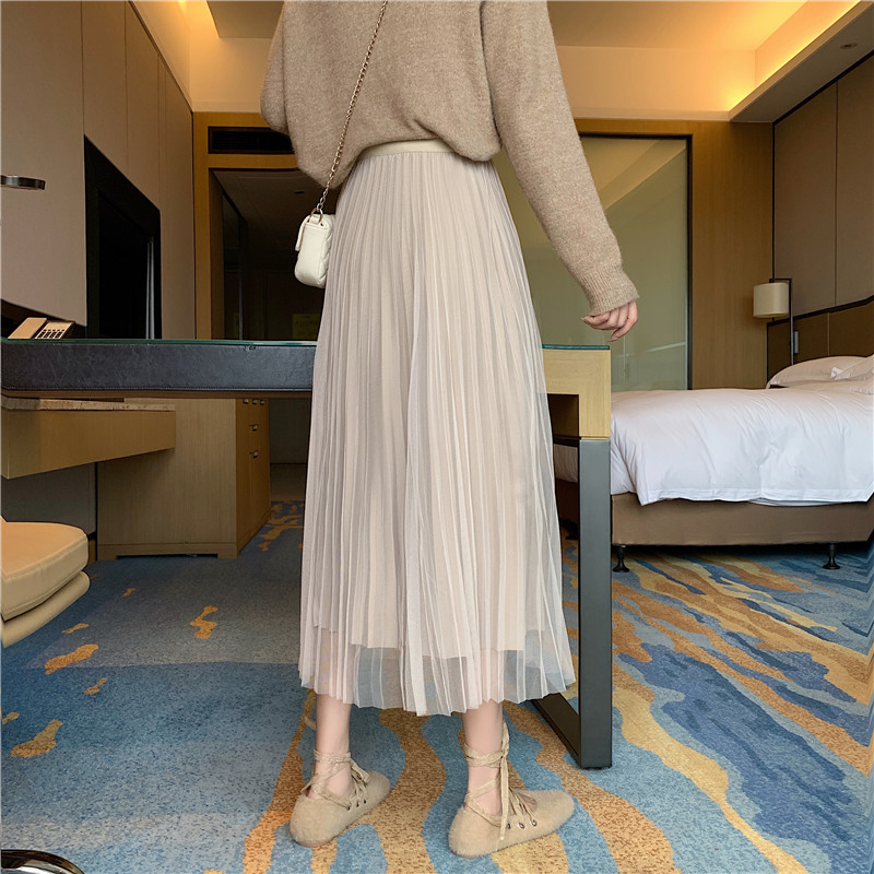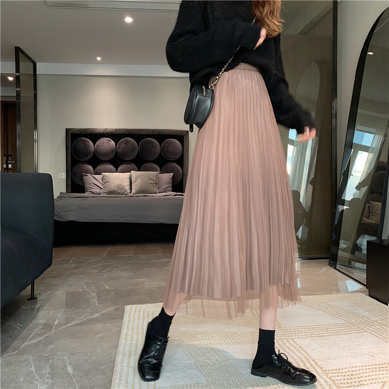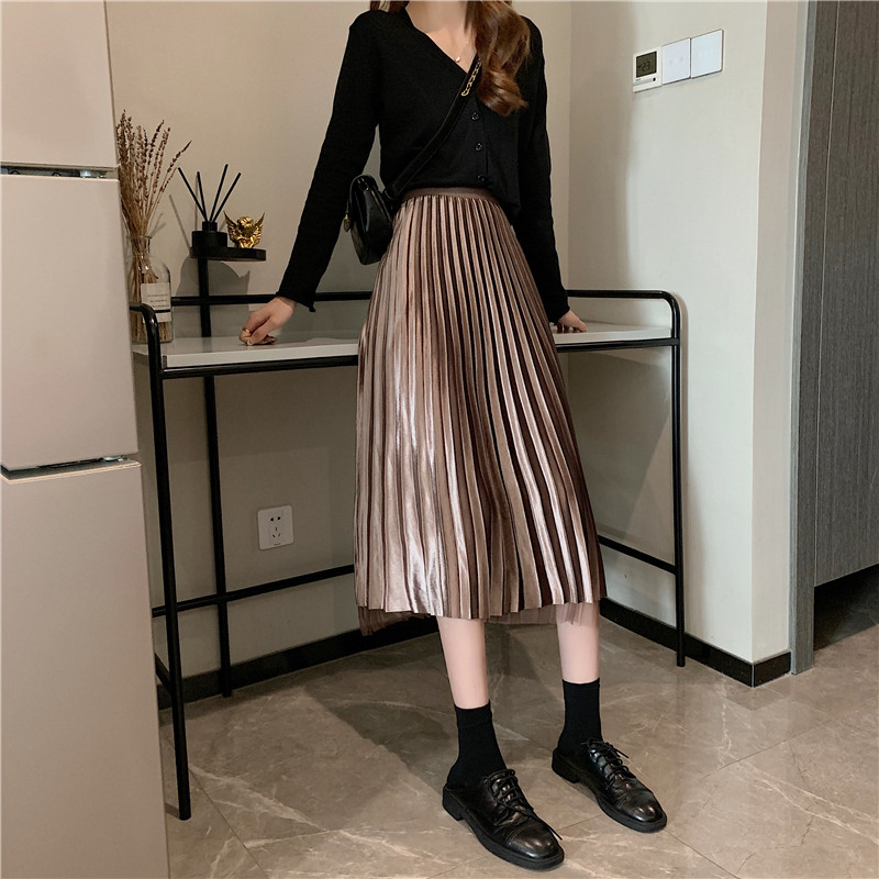 Бархатная длинная весенняя юбка в складку, длина миди, высокая талия, А-силуэт