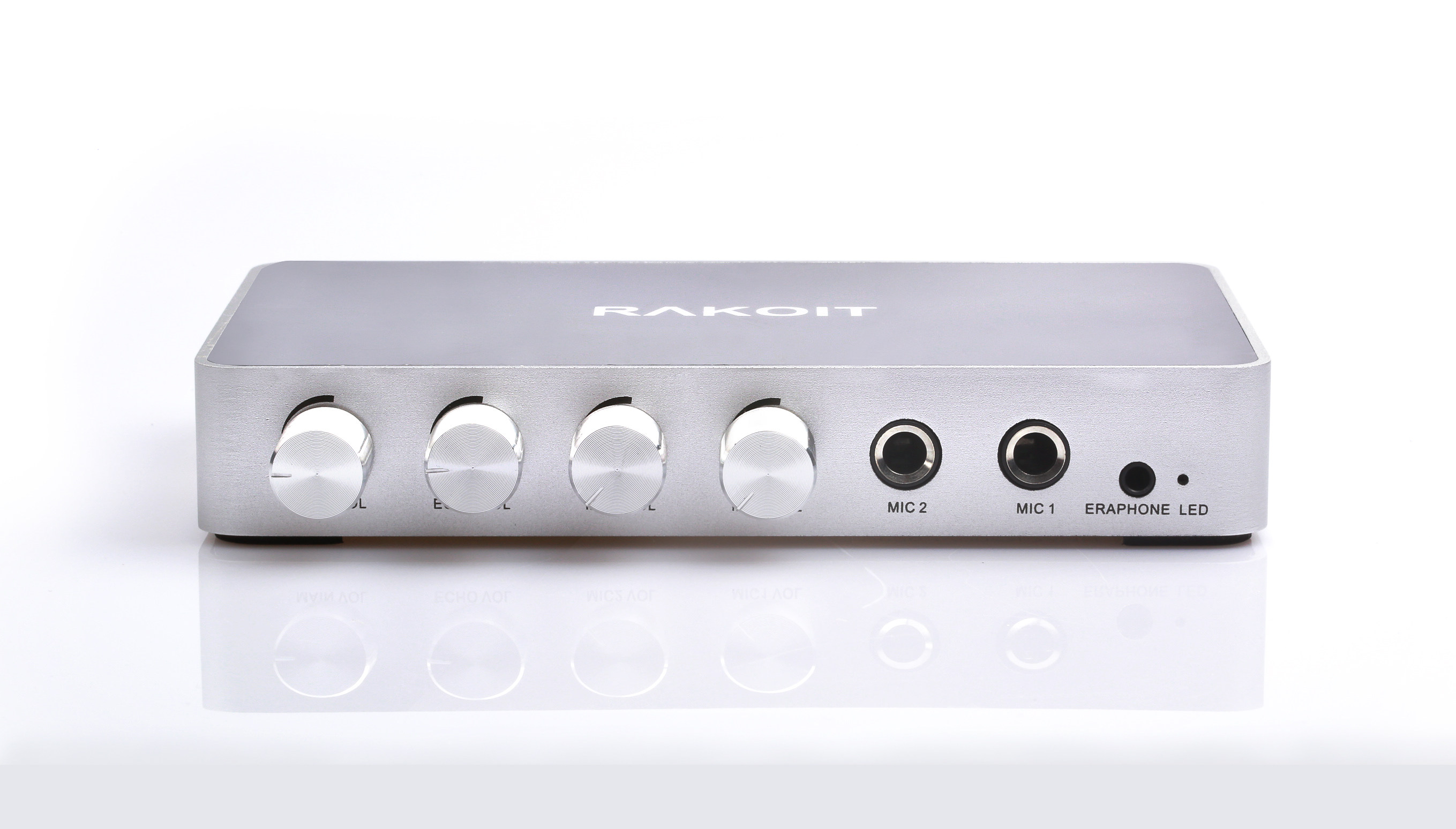 2 вход микрофонных линий, 1 регулировка громкости микрофона 1, 1 x Microfhone 2 регулировка громкости, 1 x Основная регулировка громкости, 1 x echo регулировка громкости, 1 слот для гарнитуры