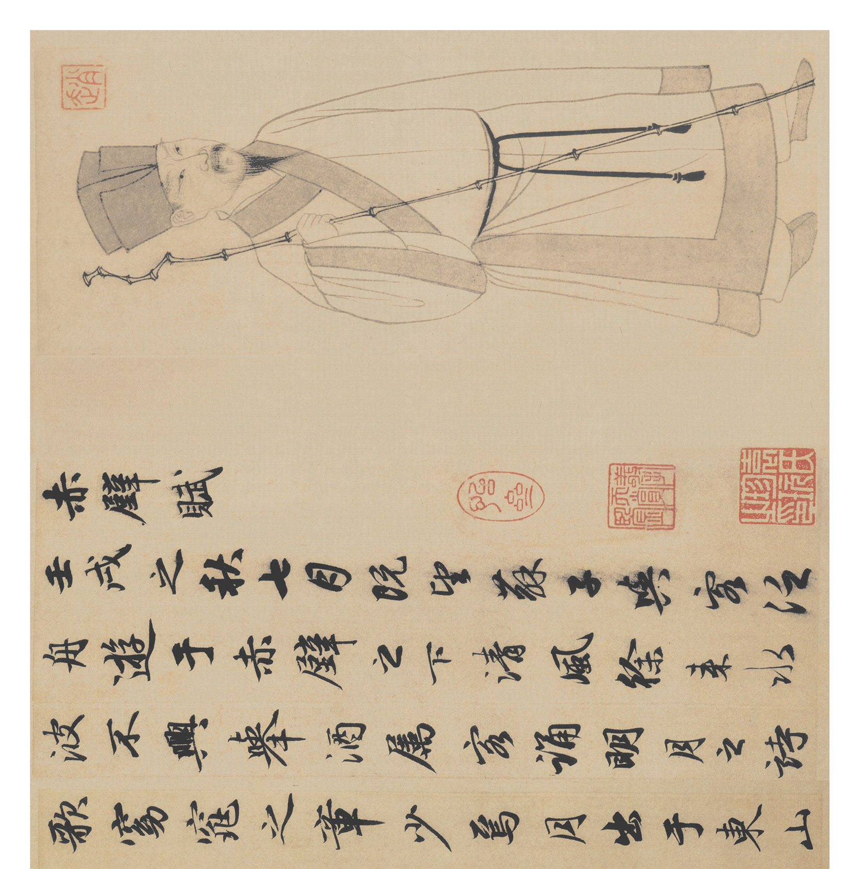 Zhao Mengfu, Qian Chibi Fu, Стихи Су Ши, каллиграфия кисти, ручные свитки, обычая в рамке, упаковка парчовой коробки