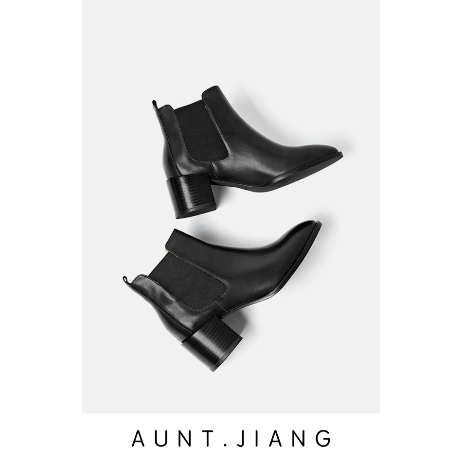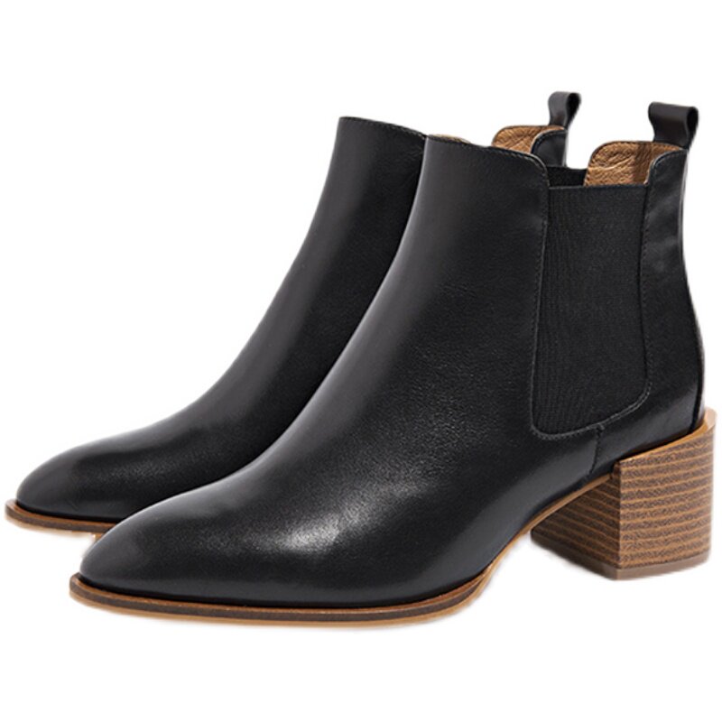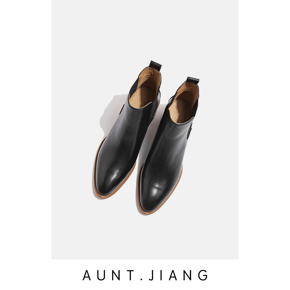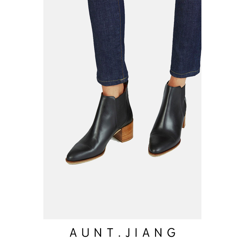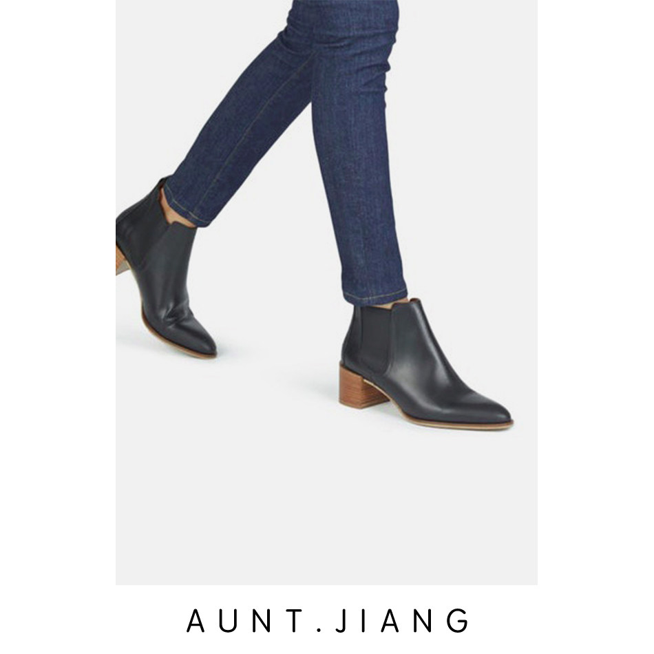 [Тетя Мастер] 2023 осень и зима Everlane в одном стиле из телячьей кожи с острым носком и толстым каблуком, короткие ботинки Челси, ниша