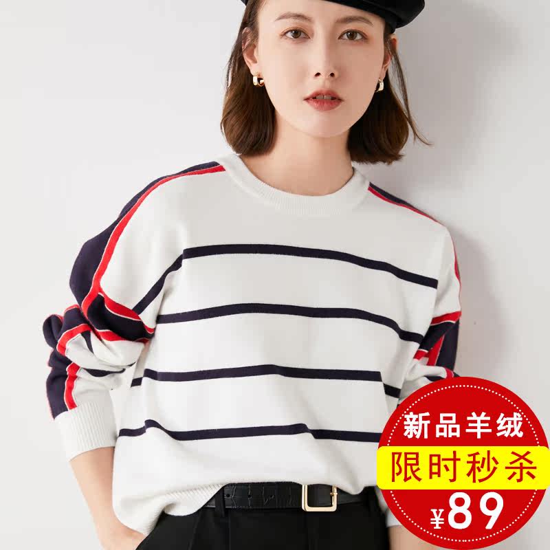 Шерстяной свитер, демисезонная трикотажная утепленный лонгслив с круглым воротником, кашемировый милый бархат, свободный крой
