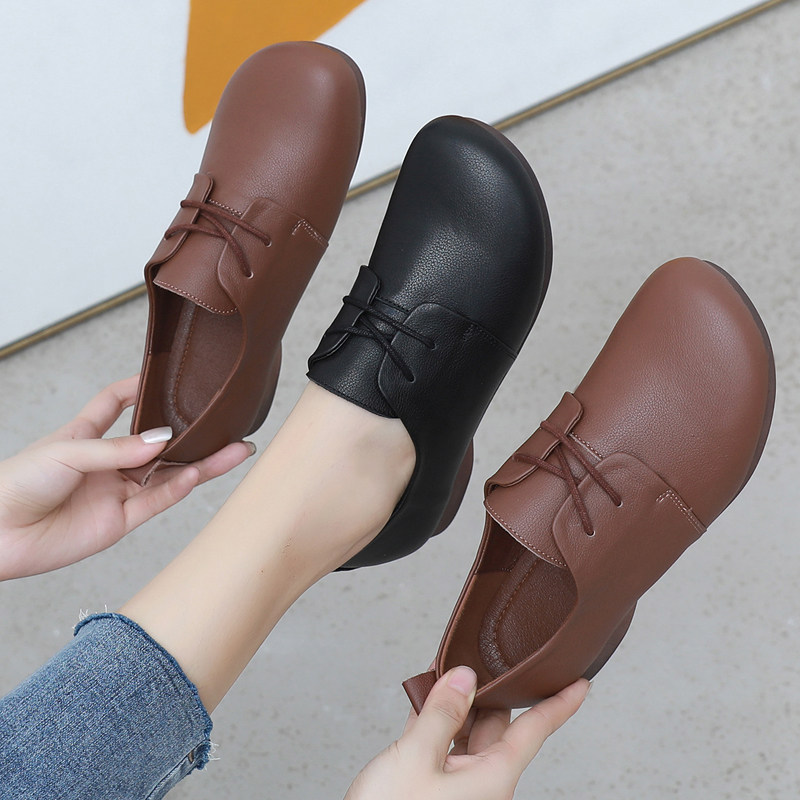 Обувь для кожаной обуви для матери, из натуральной кожи, осенняя, мягкая подошва, большой размер
