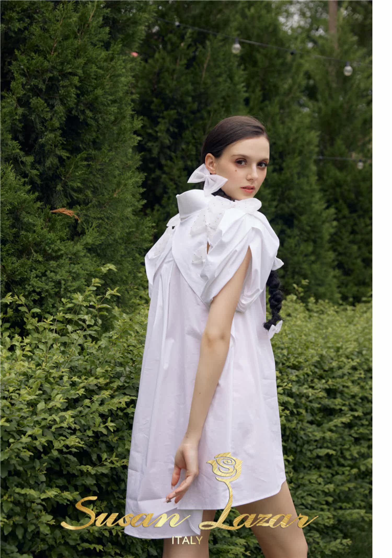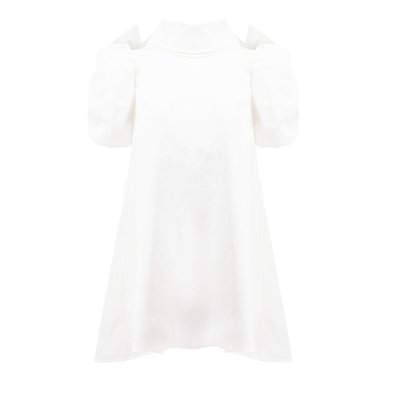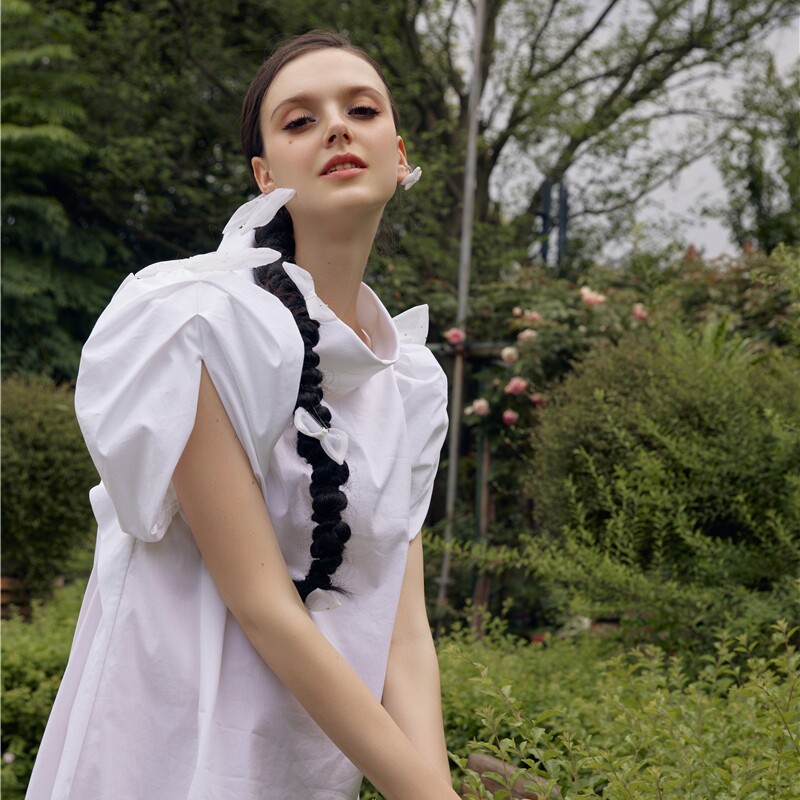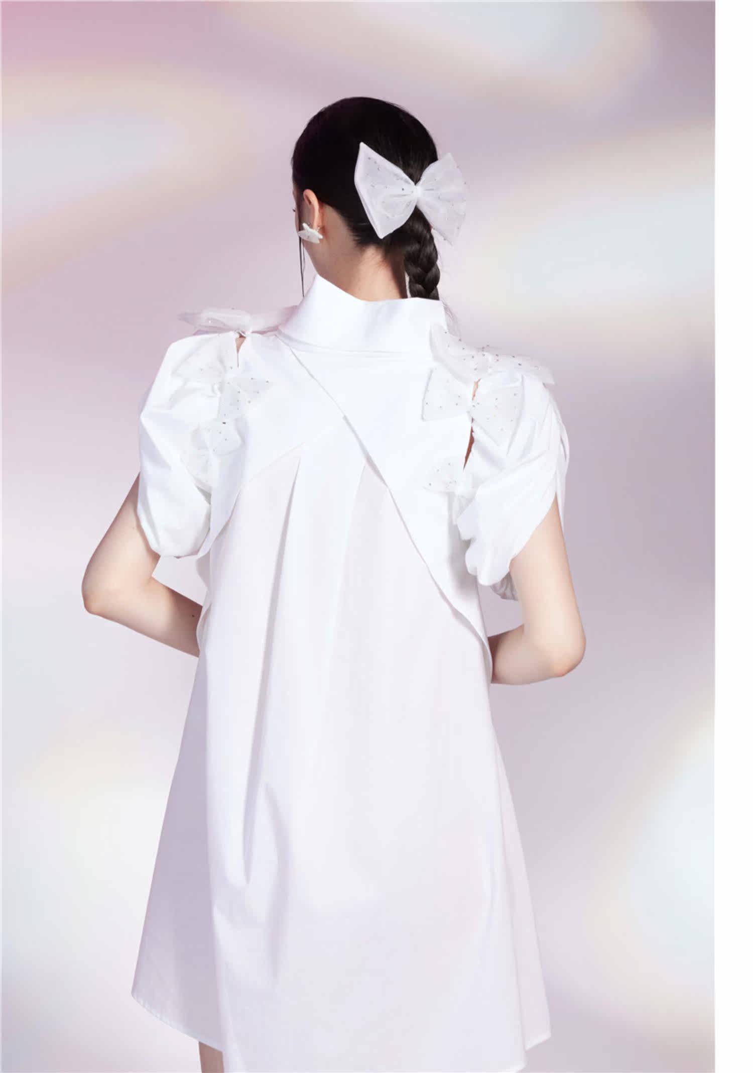 Трехмерное платье с круглым воротником с бантиком, рукава фонарики