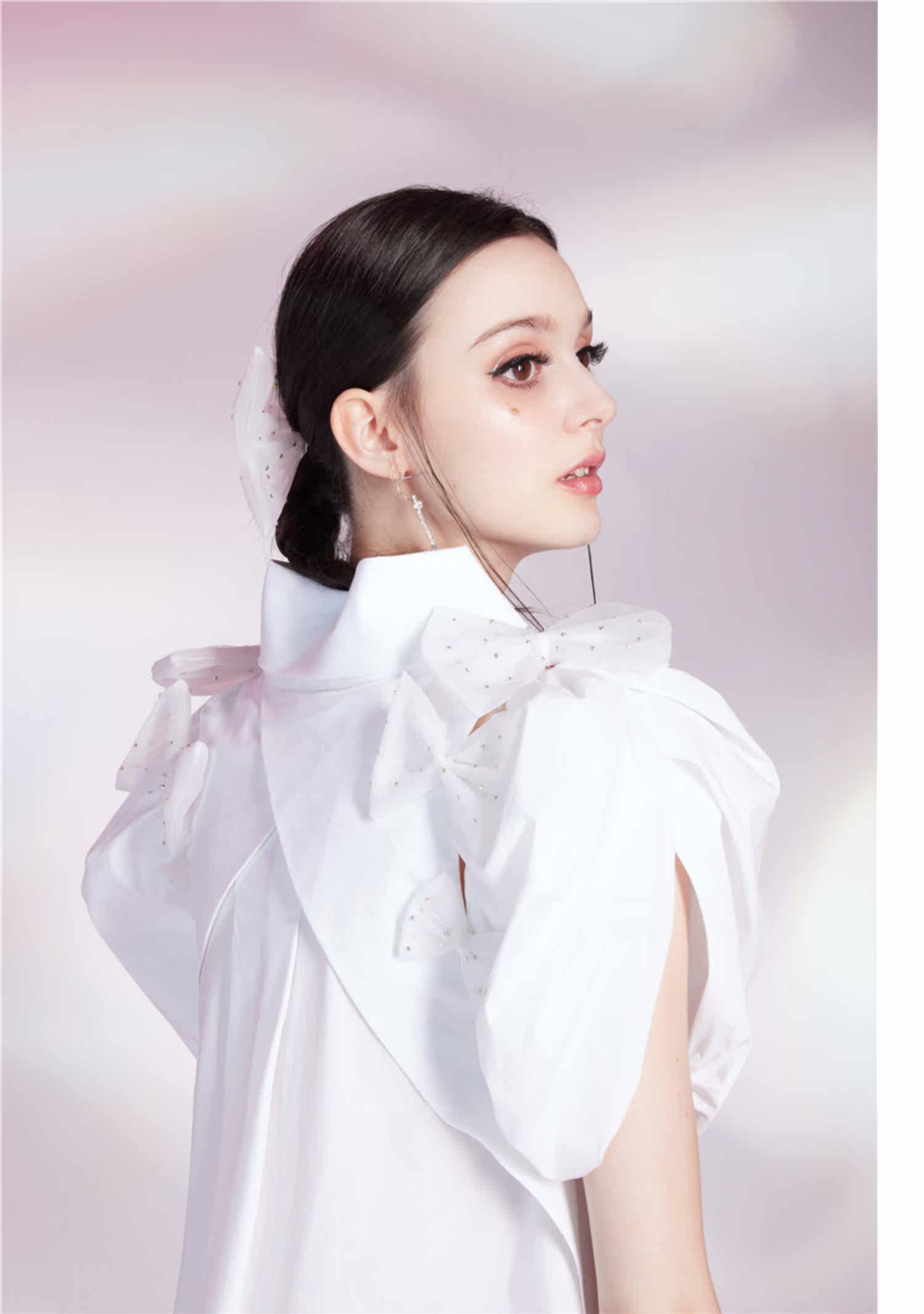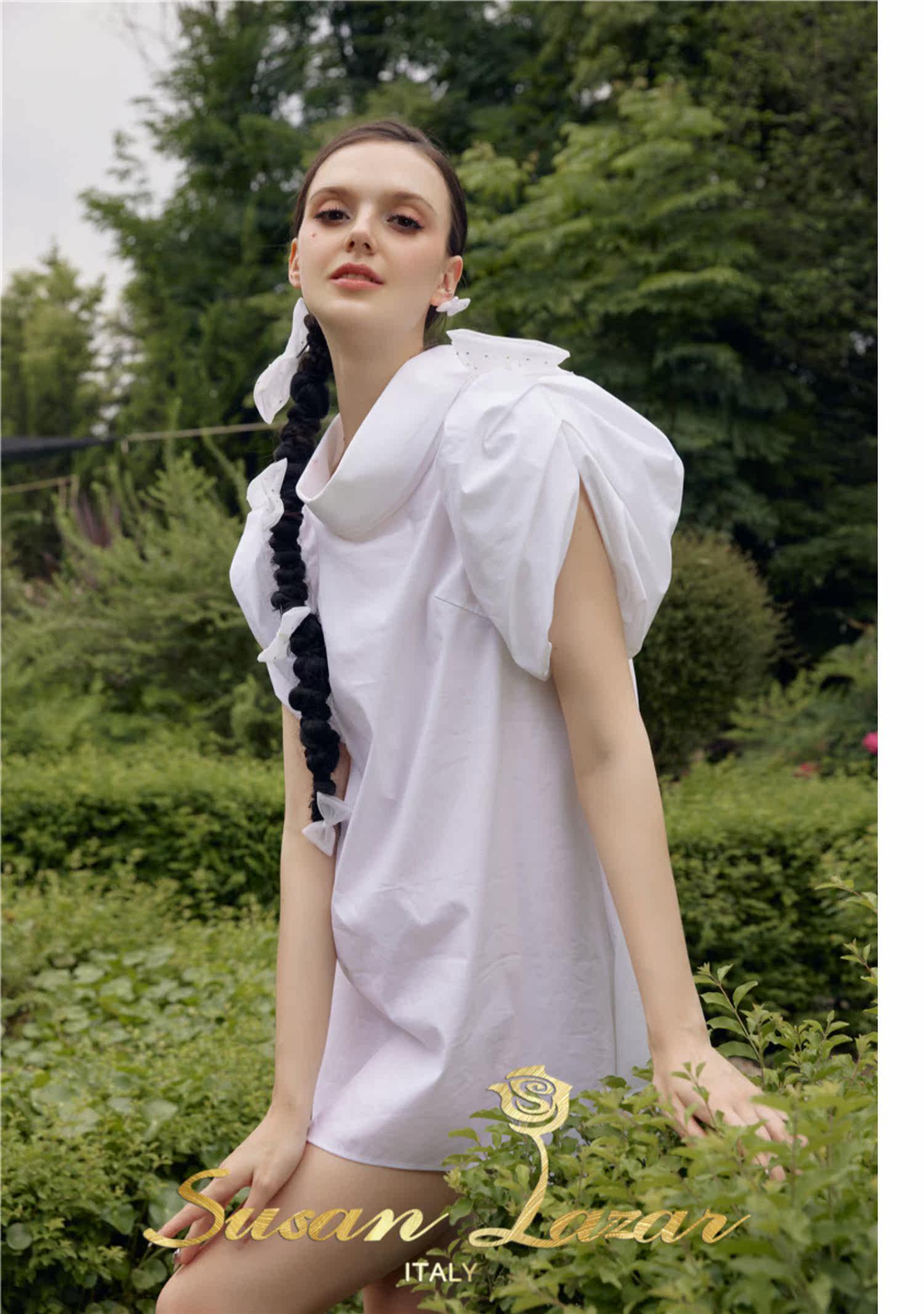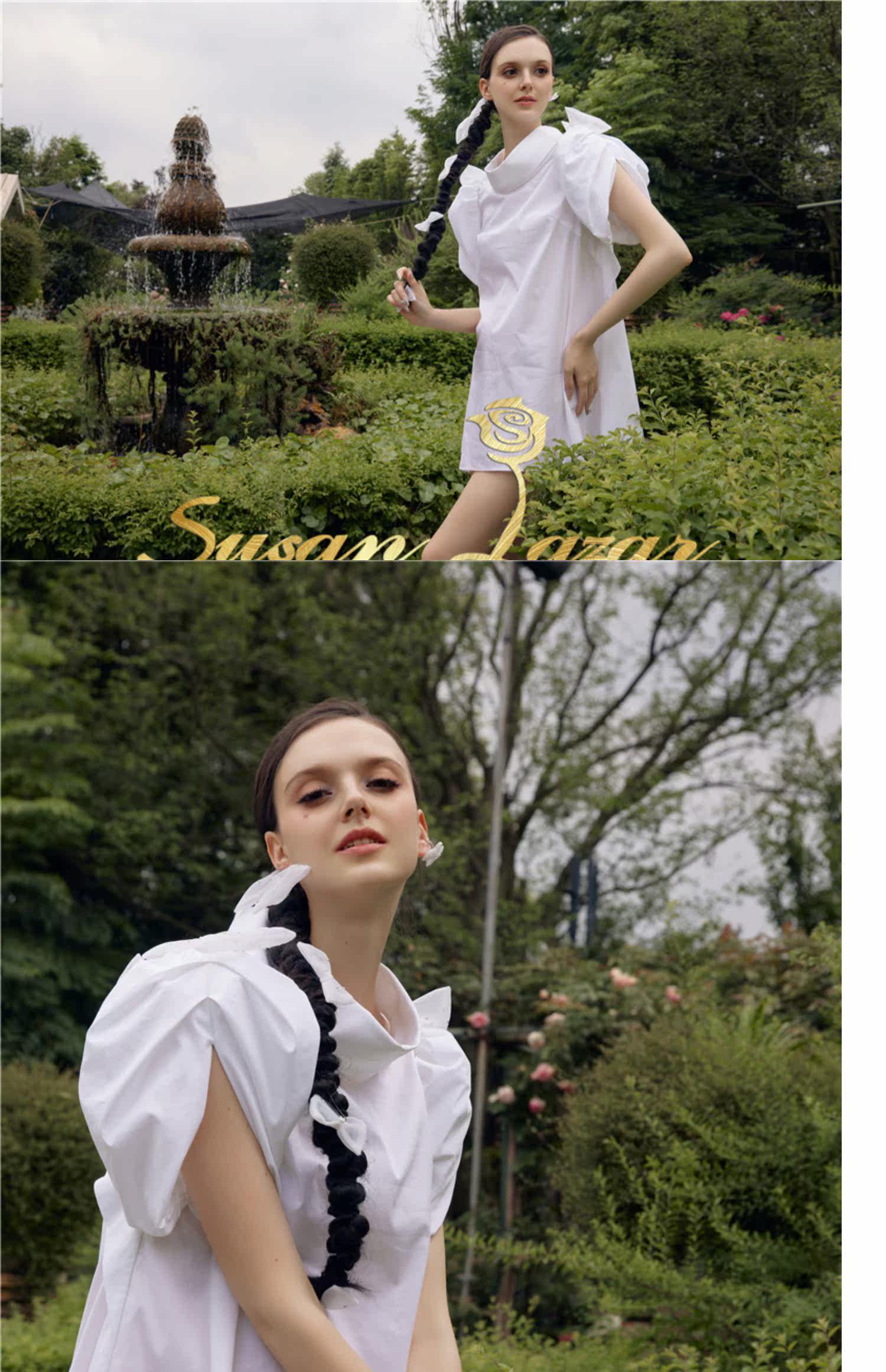 Трехмерное платье с круглым воротником с бантиком, рукава фонарики