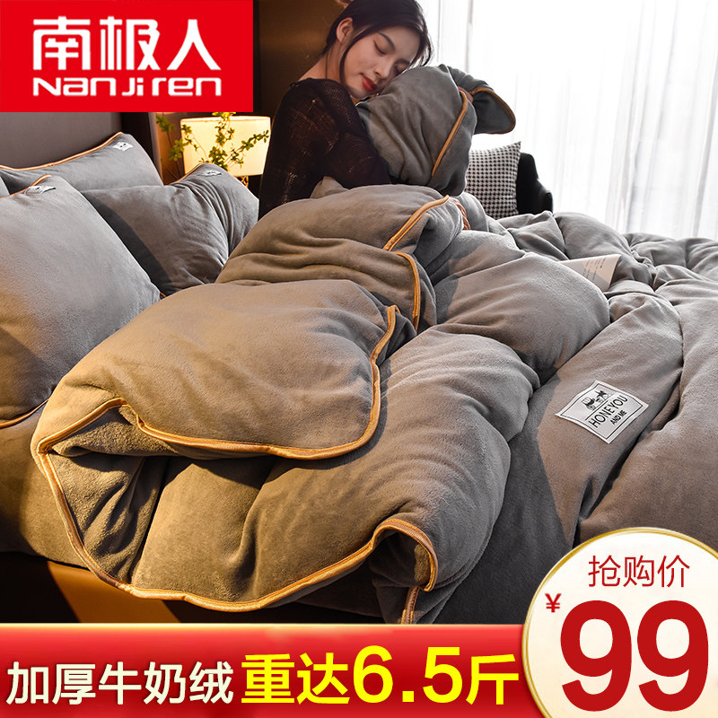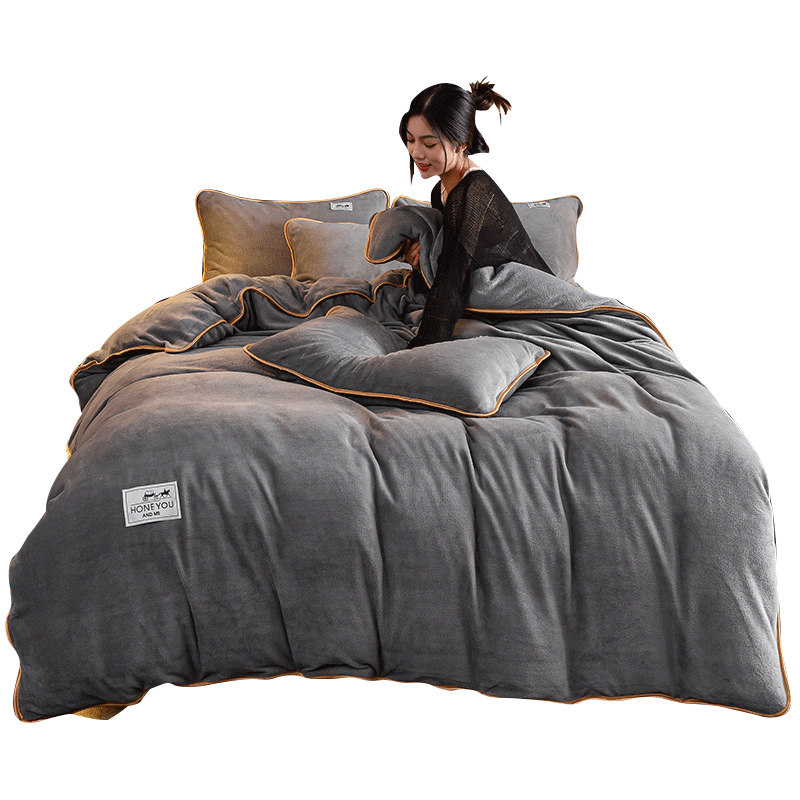 Бархатные джинсы с начесом, утепленный комплект, простыня, фланелевый коралловый бархатный пододеяльник, 4 предмета, 3 предмета