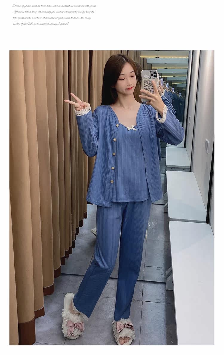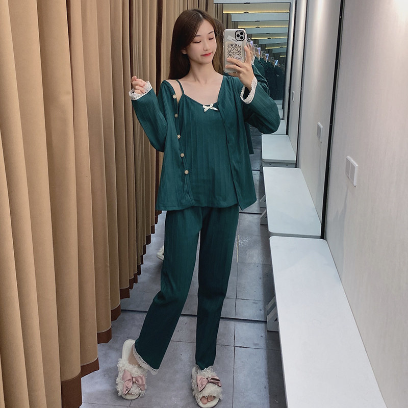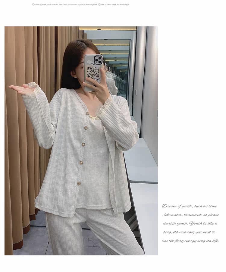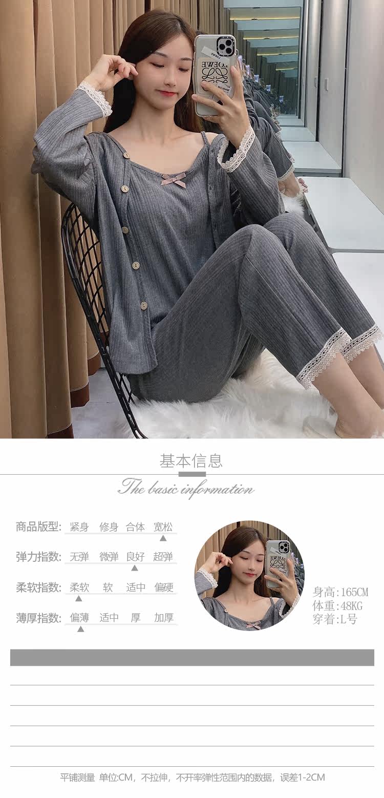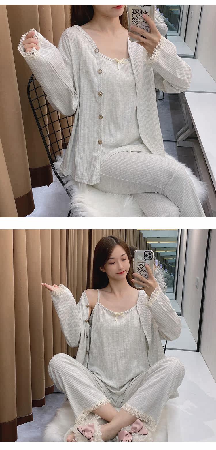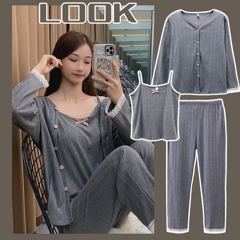 Сексуальная летняя хлопковая пижама, тонкие штаны, осенний комплект, эффект подтяжки, 3 предмета, коллекция 2021