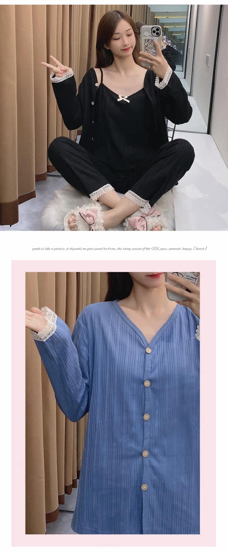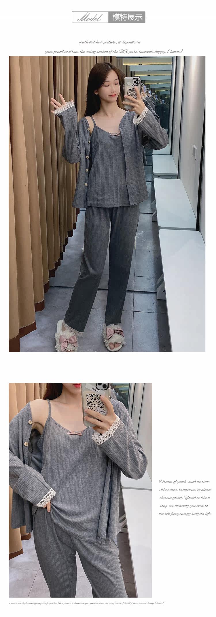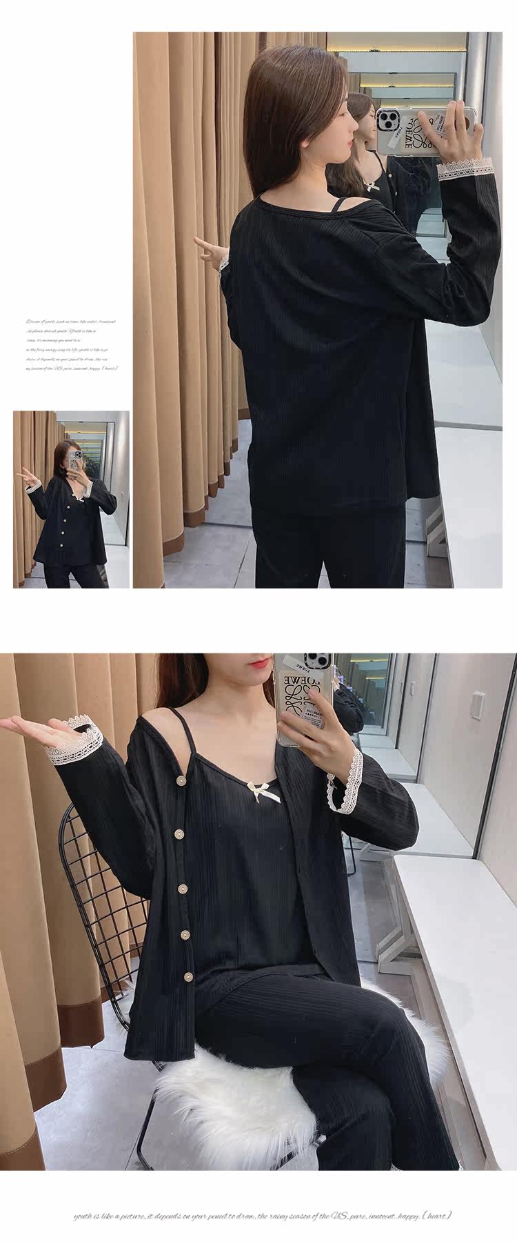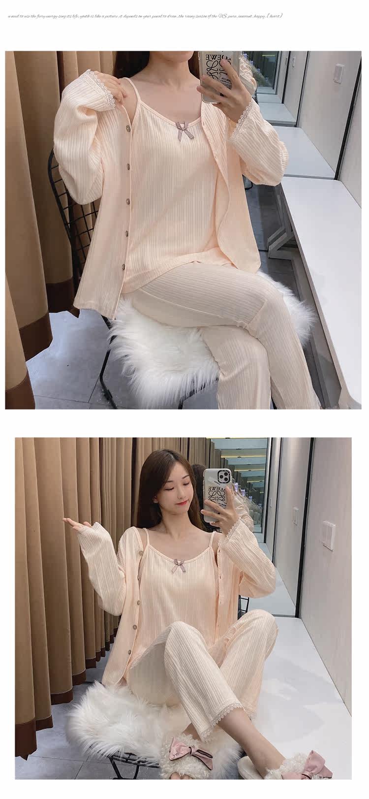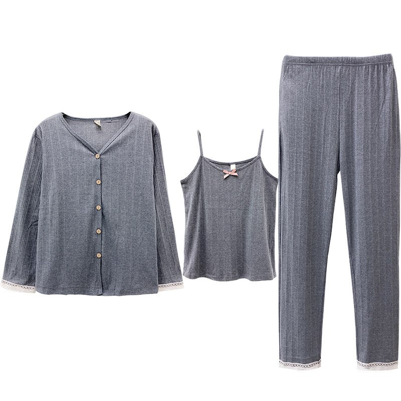 Сексуальная летняя хлопковая пижама, тонкие штаны, осенний комплект, эффект подтяжки, 3 предмета, коллекция 2021