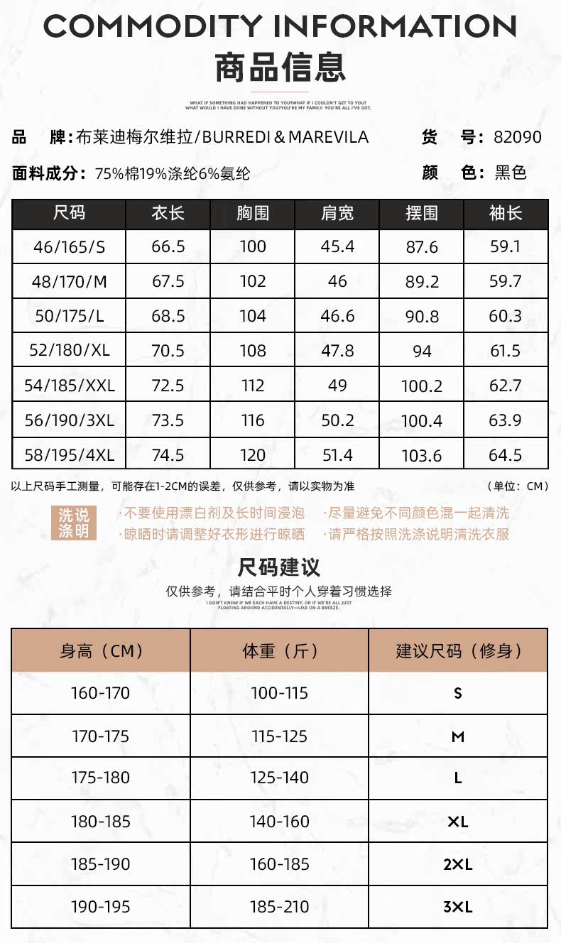 | Размер: | 46/S/165, 48/M/170, 50/L/175, 52/XL/180, 54/XXL/185, 56/XXXL/190, 58/XXXXL/195, Пожалуйста, проконсультируйтесь с обслуживанием клиентов для точного кода |