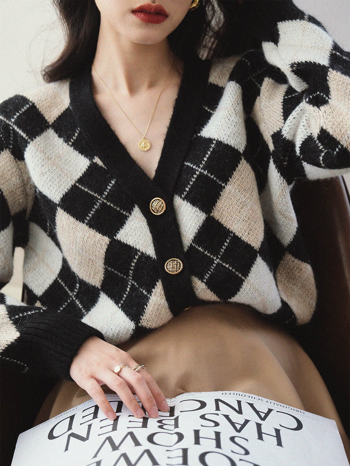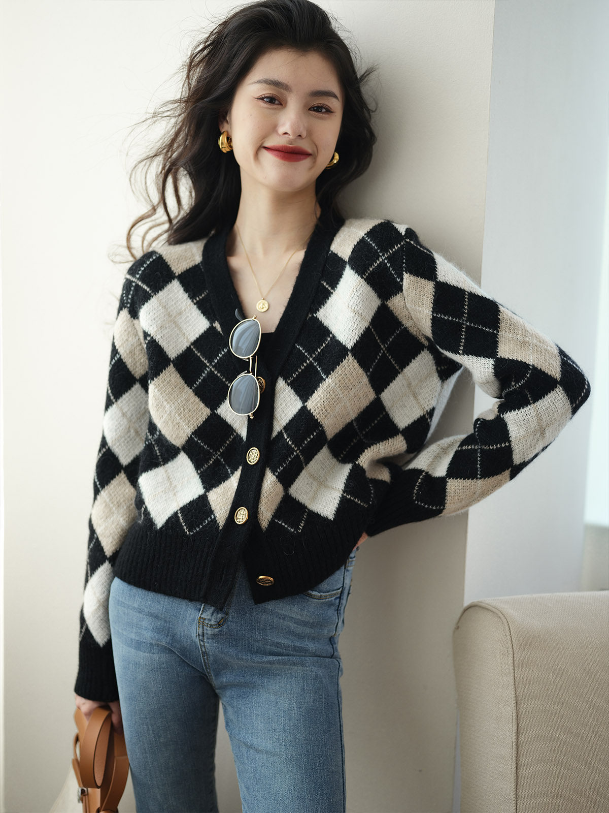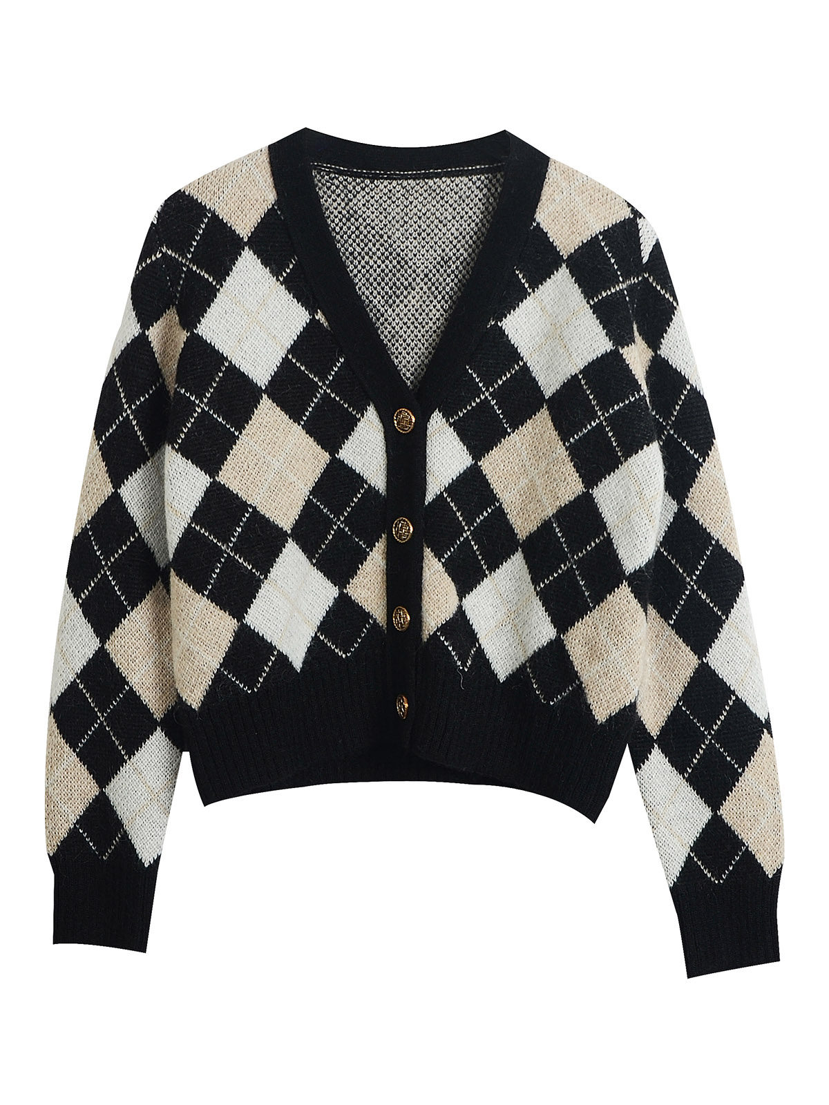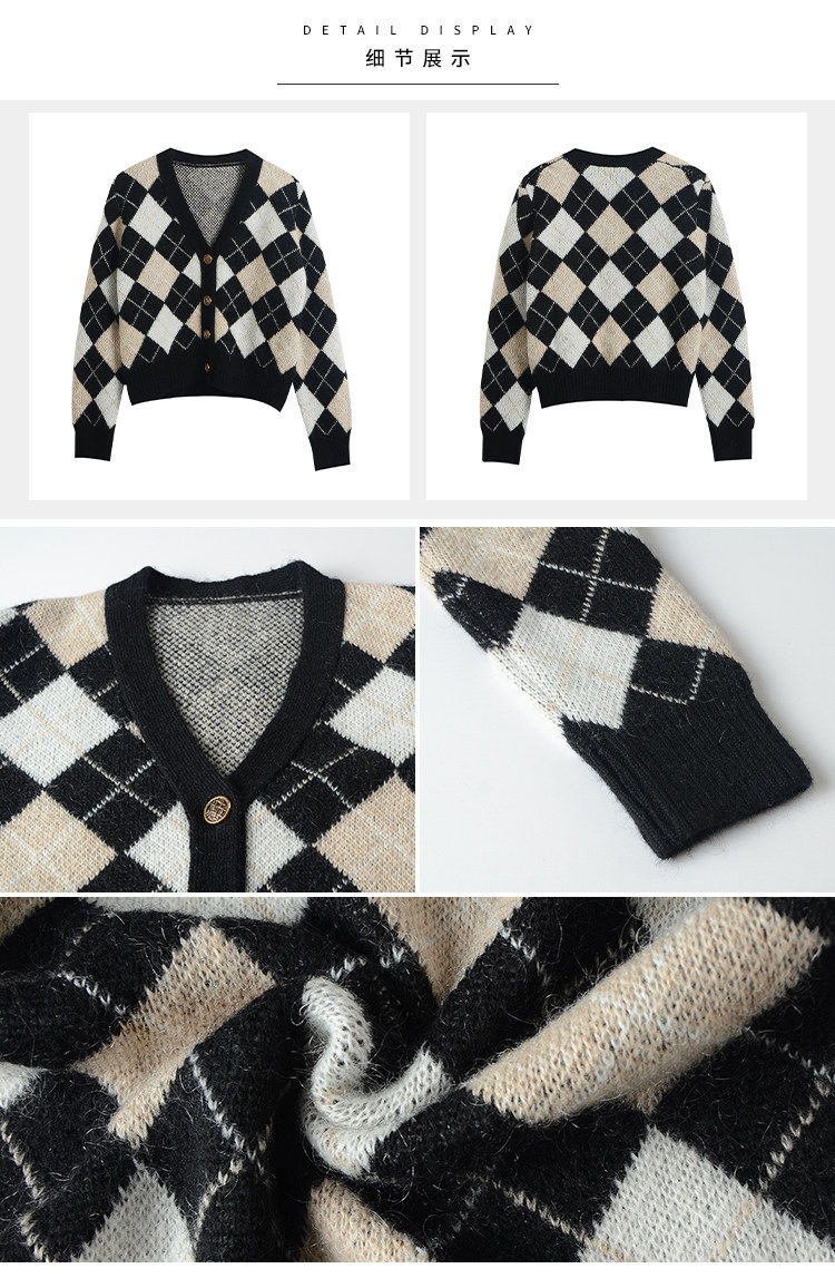 Трикотажный кардиган, осенний шерстяной свитер с ромбовидным узором, коллекция 2021