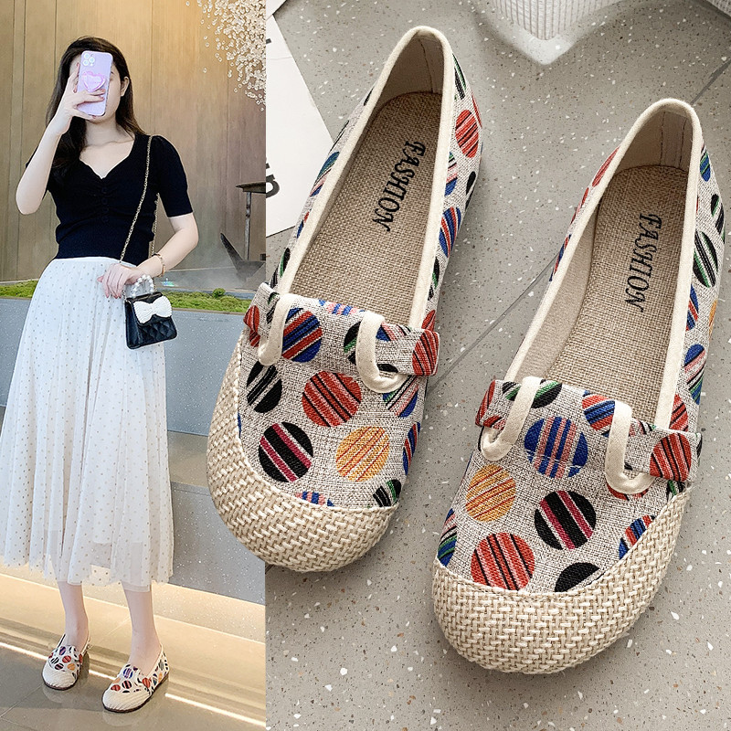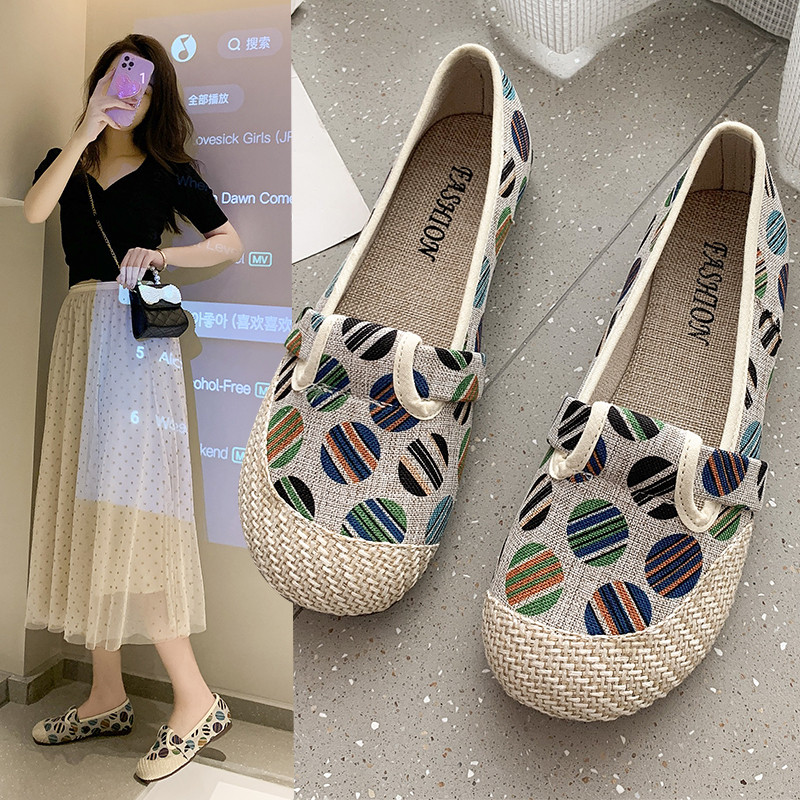 Женские тонкие туфли на мягкой подошве, новые летние туфли 2021 года, универсальные женские туфли на плоской подошве, рыбацкая обувь в этническом стиле, ленивая обувь