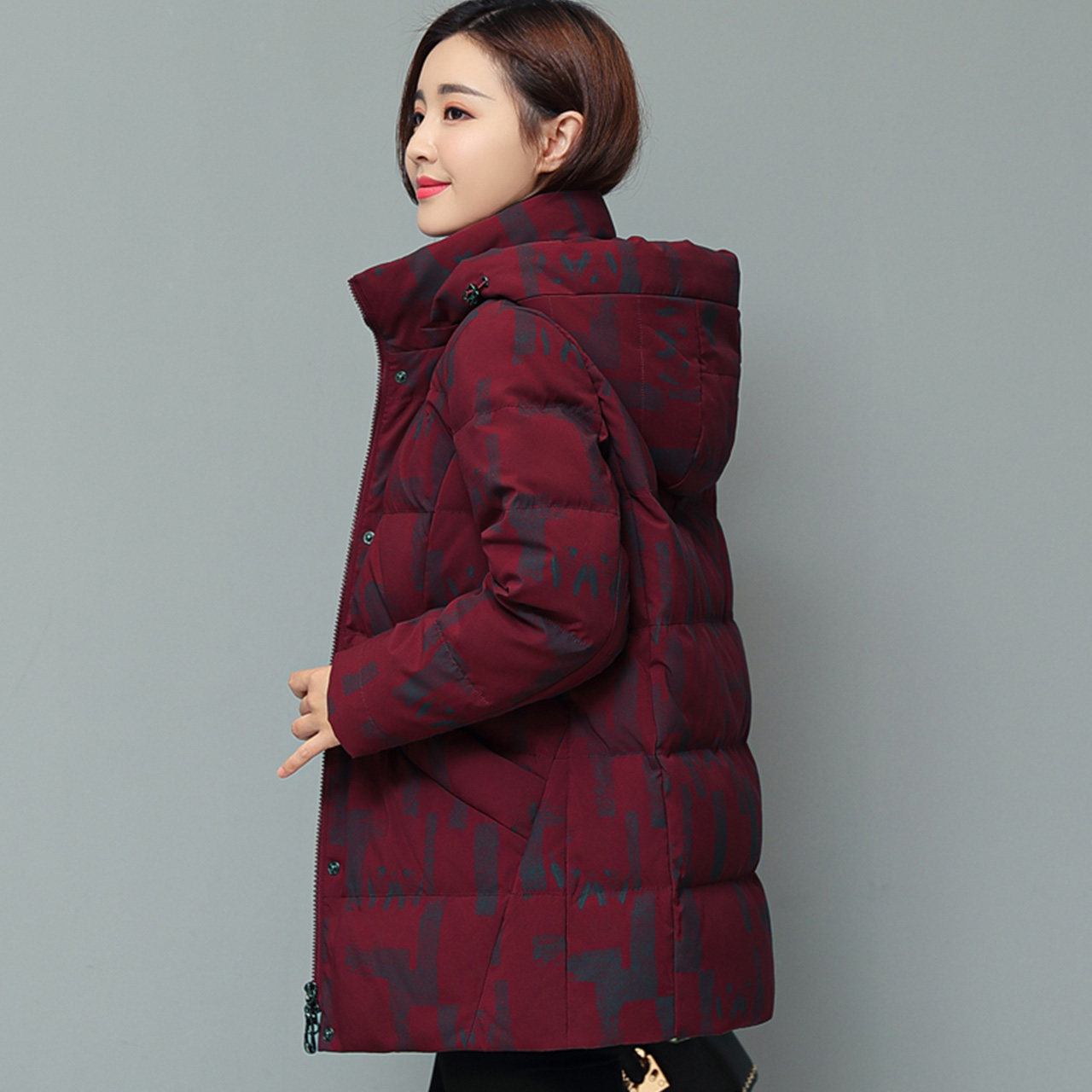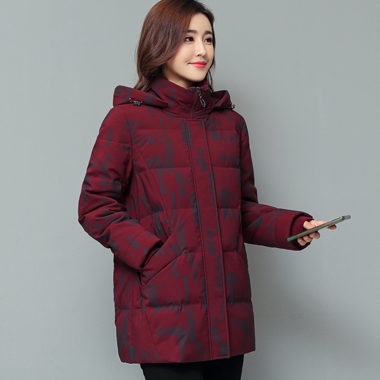 Демисезонный удерживающий тепло красный цветной длинный пуховик с капюшоном для матери, для среднего возраста