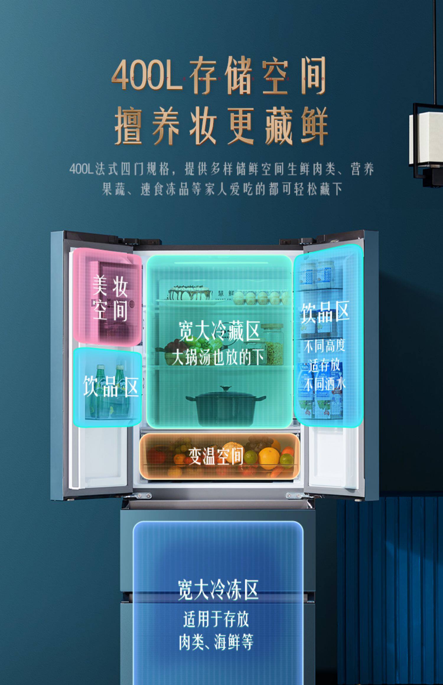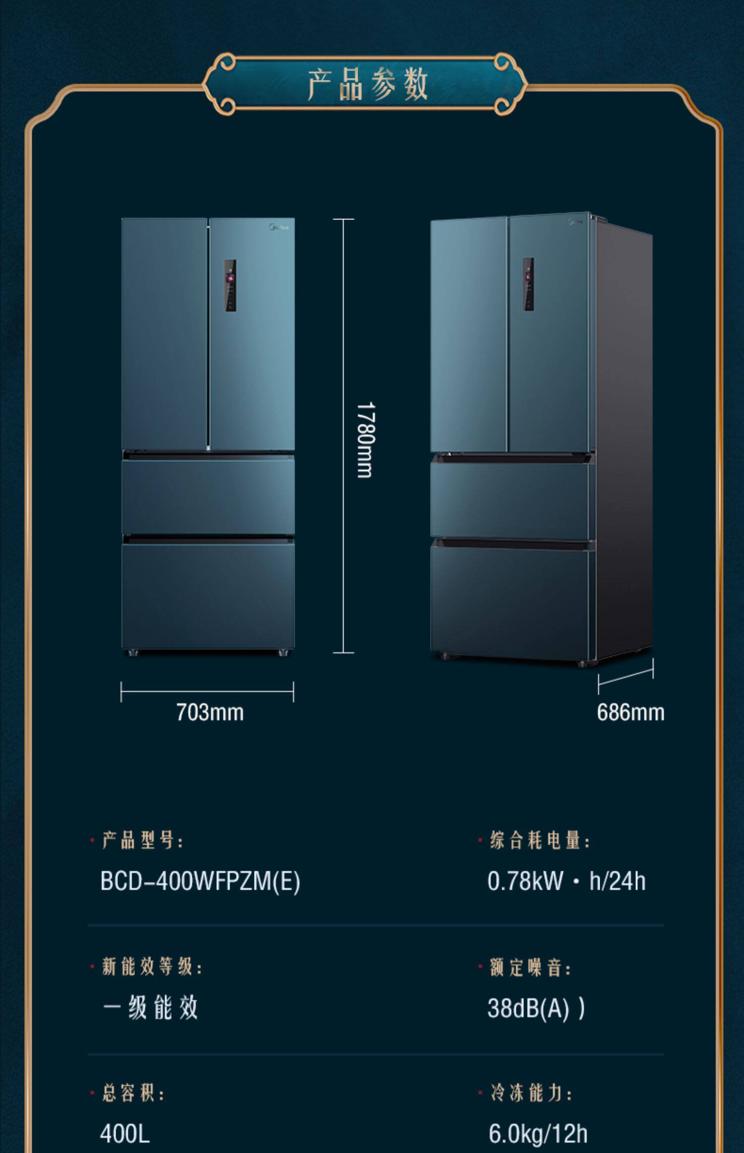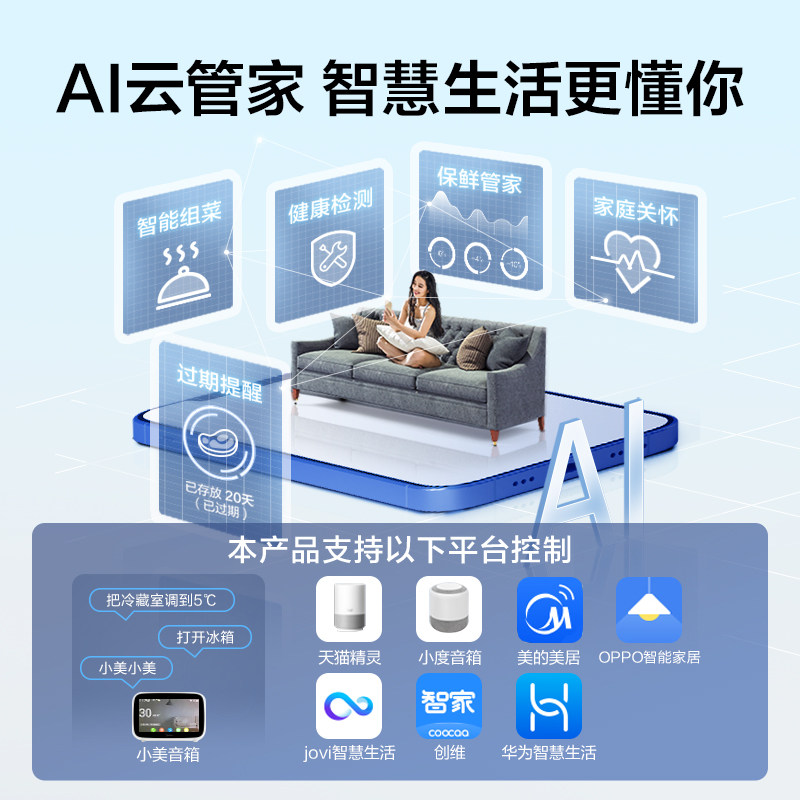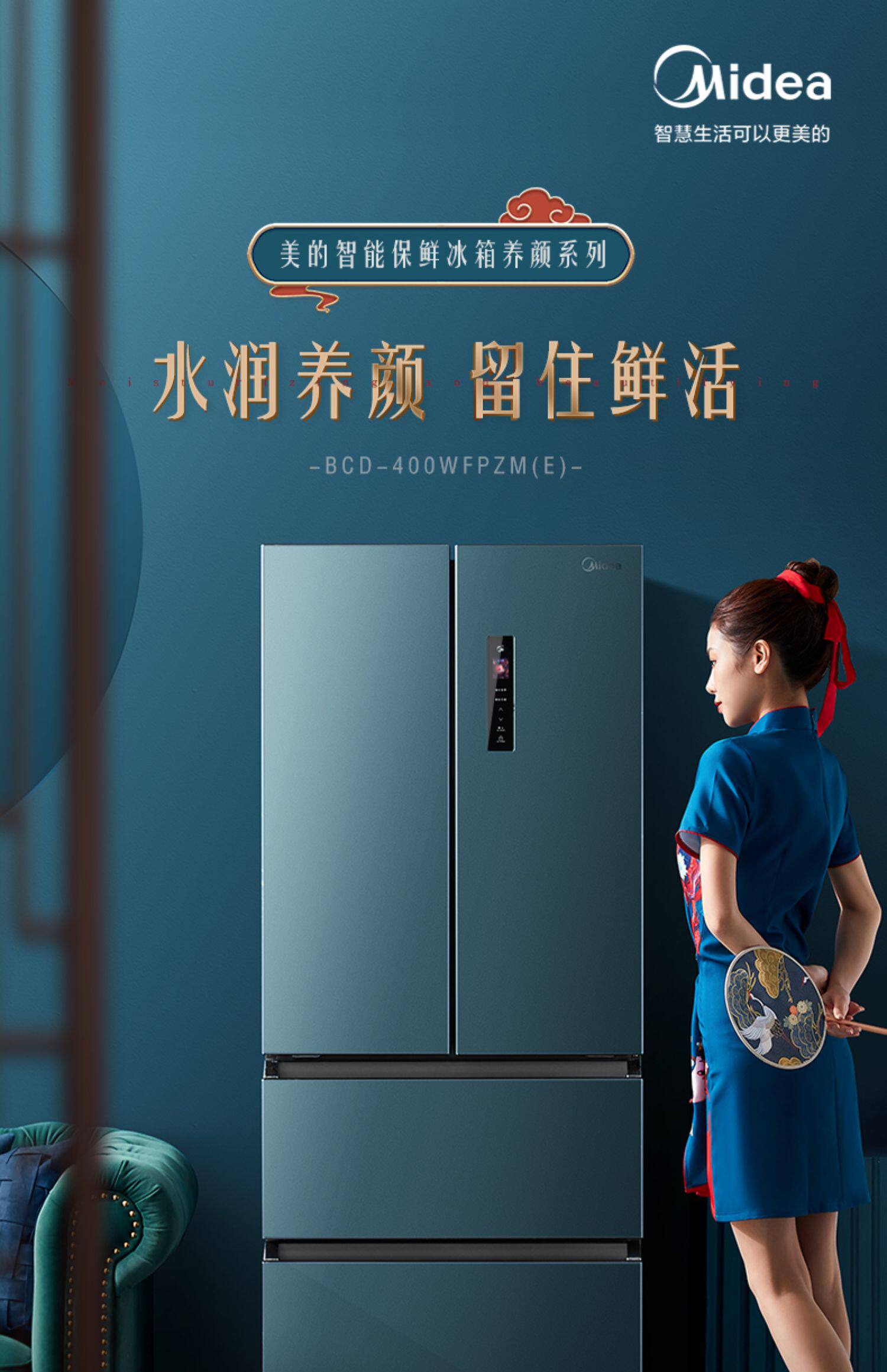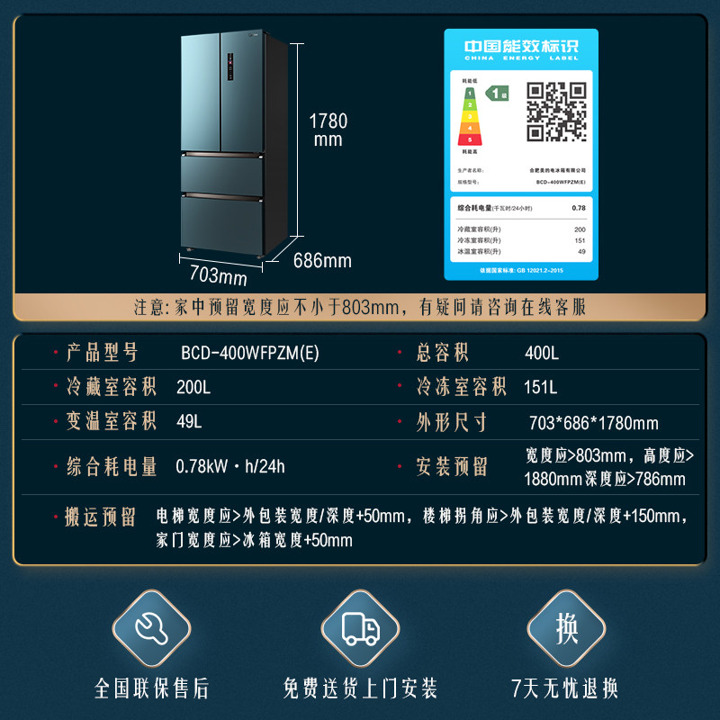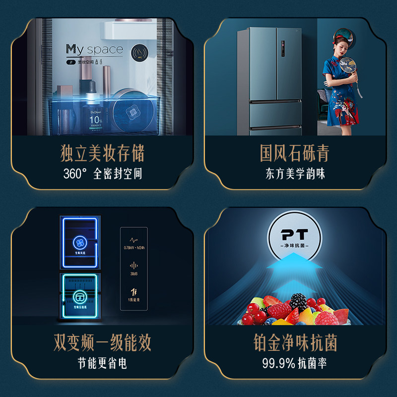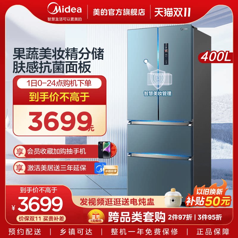[Красота -макияж питатель] Midea 400L Французская многоуровневая плазон -семейство Four Famy -Интеллектуальные холодильники