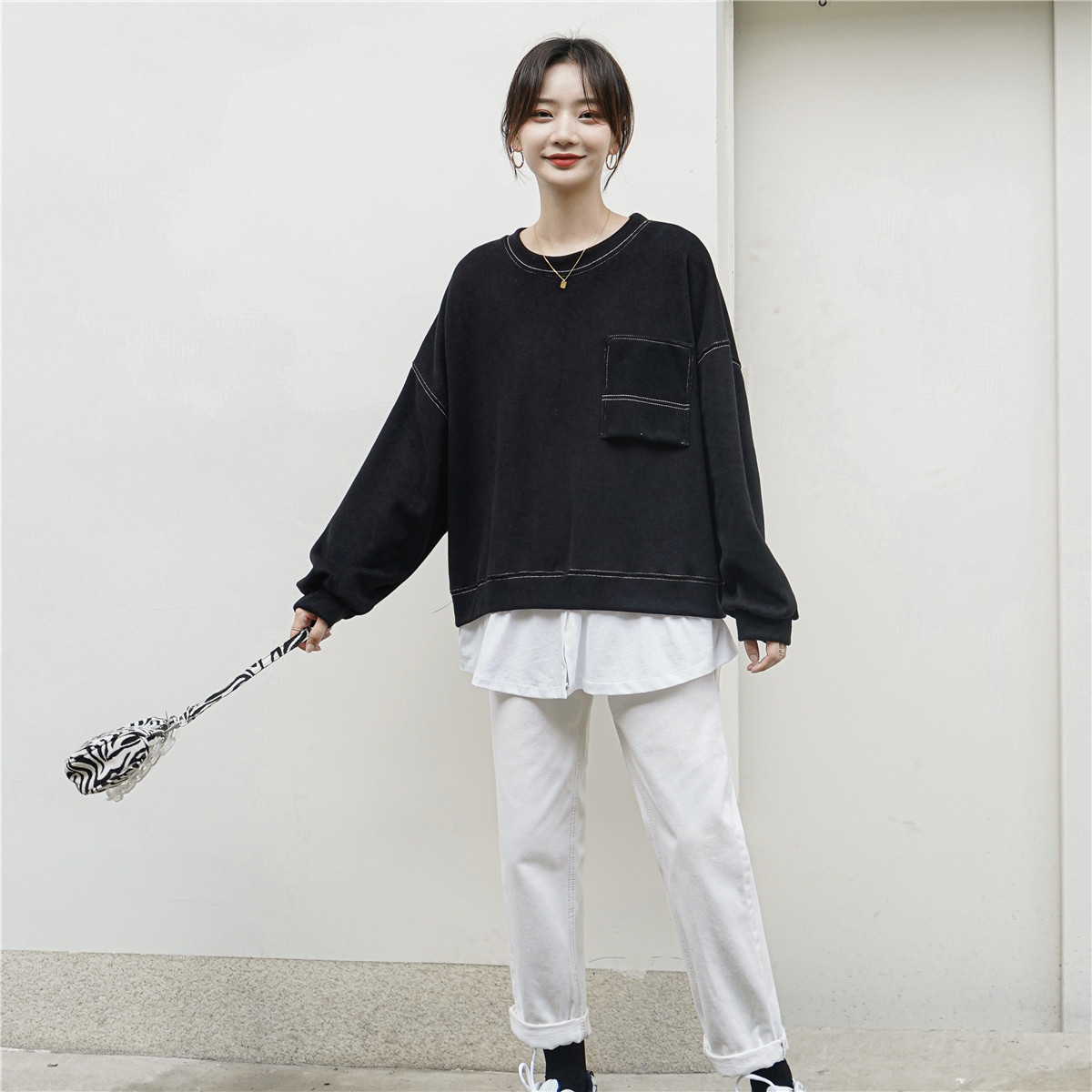 Комплект, демисезонная толстовка, свежий базовый бархатный лонгслив, свободный крой