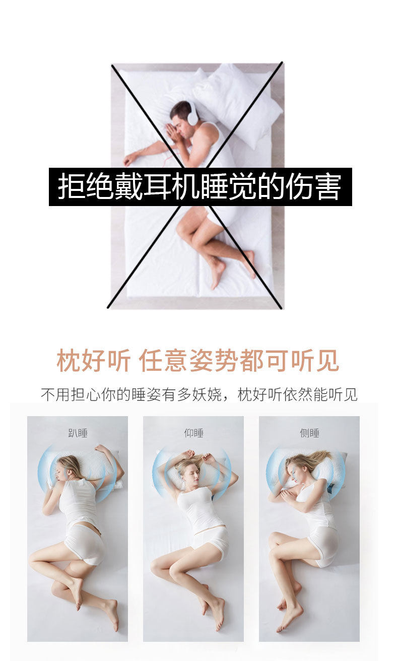 Новая концепция под подушкой, подушка для аудио -гарнитуры Bluetooth, подушка, подушка, сон Celler Conduction, нет уха, без боли, нет чувства комфорта, помогите спать