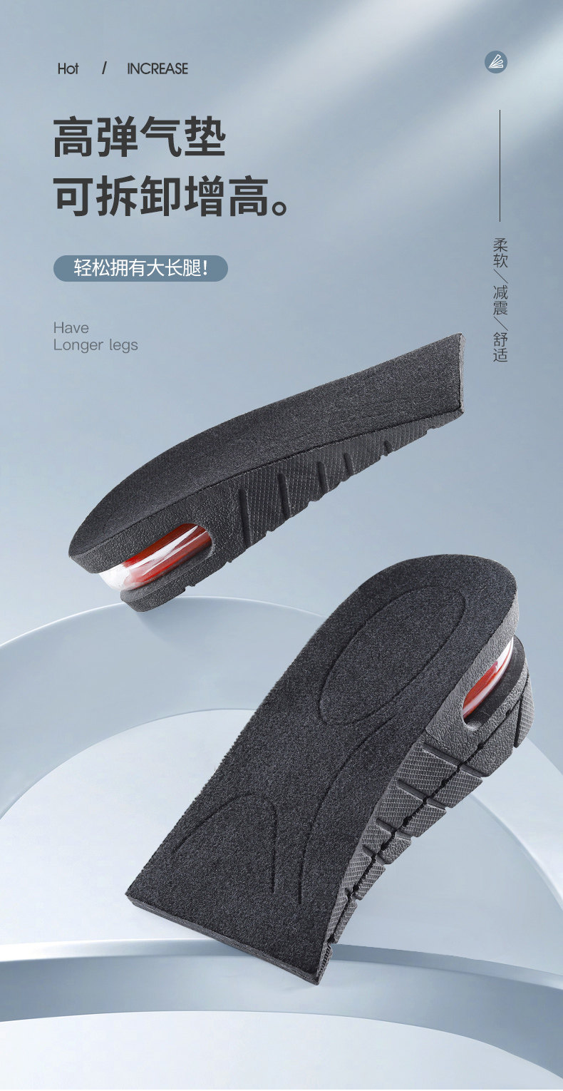 Кушон, мужские амортизирующие стельки для увеличения роста, невидимые комфортные полустельки