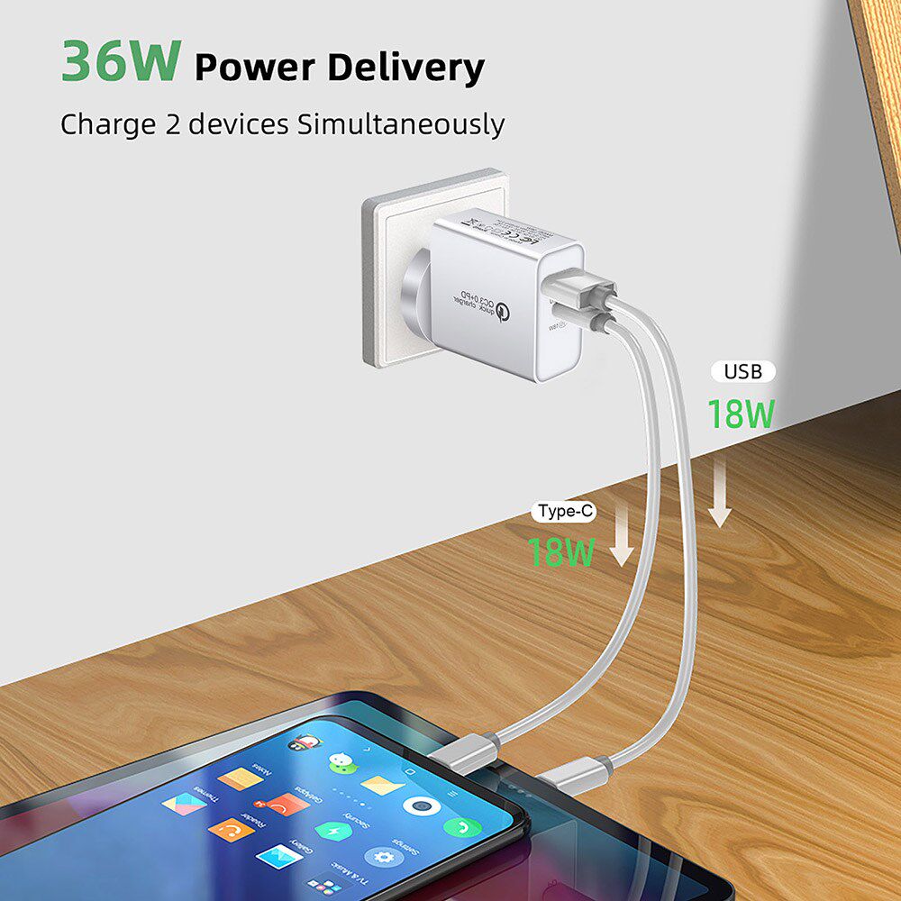 FDGAO 36W FAST USB PD Charger Quick Charge 3.0 Type C PD 3