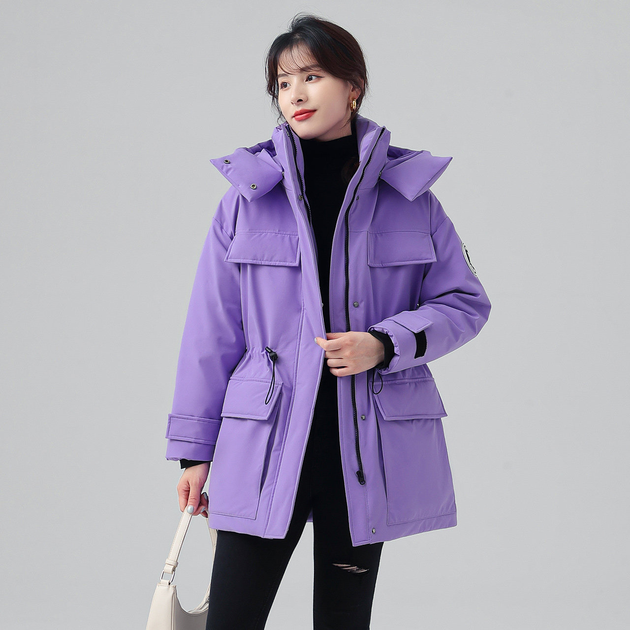 Демисезонный удерживающий тепло ветрозащитный комфортный пуховик с капюшоном, свободный крой