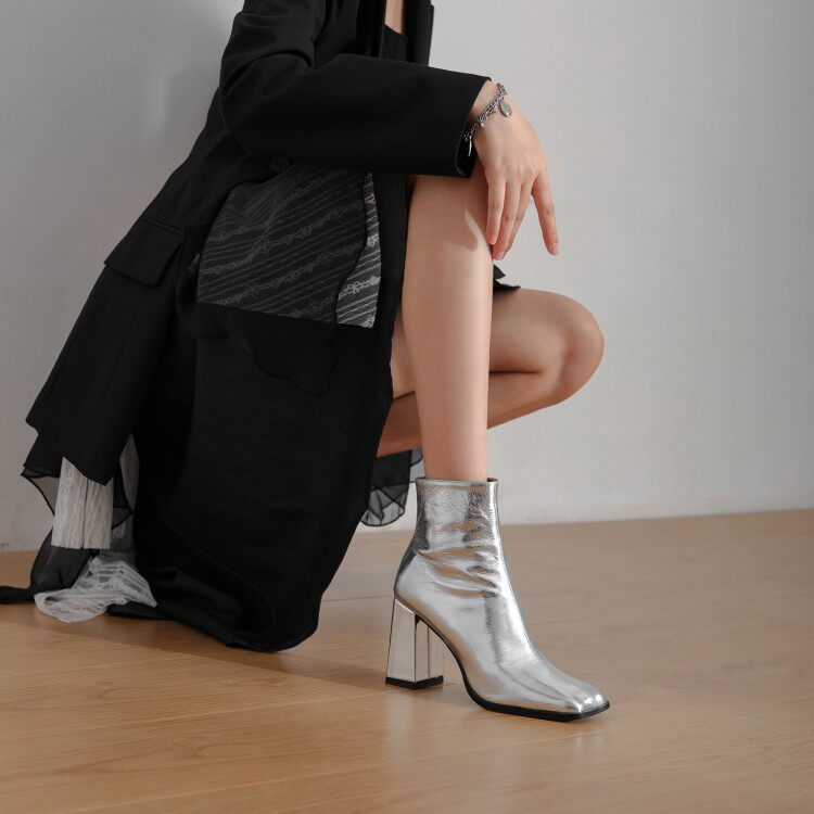 Кожаные демисезонные золотые короткие сапоги с молнией, из натуральной кожи, европейский стиль
