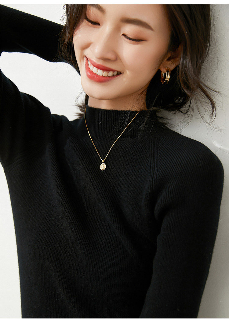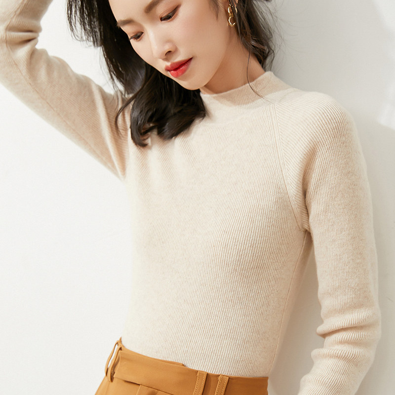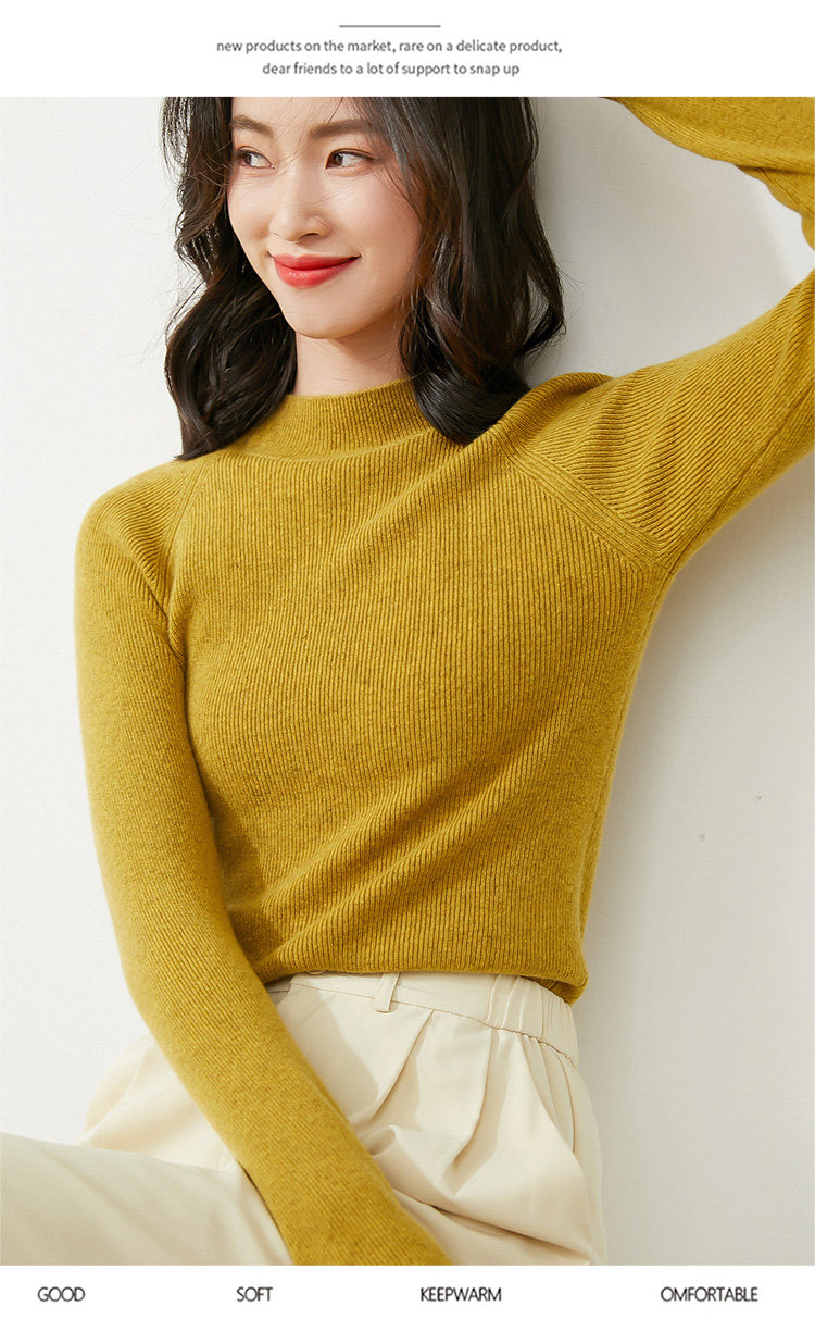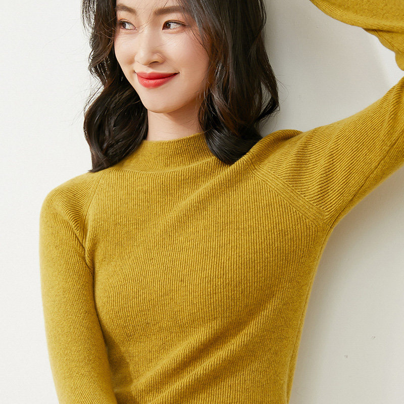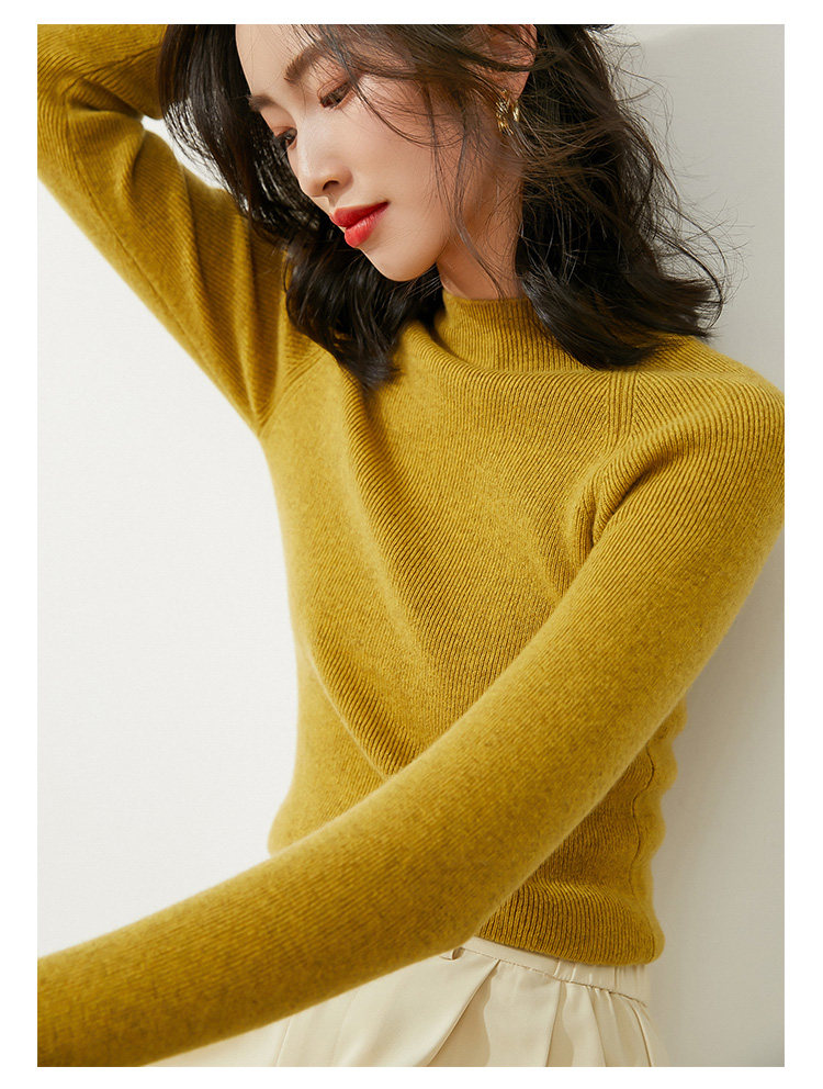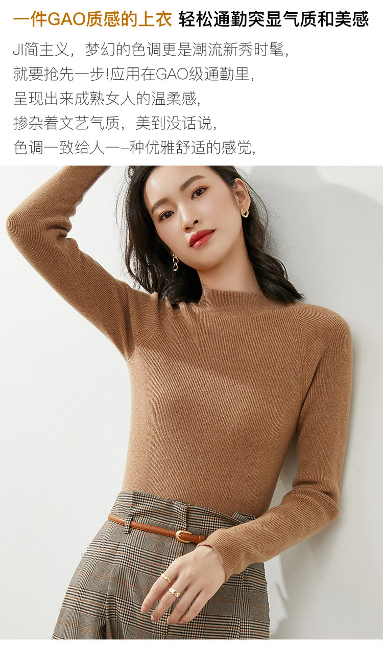 Демисезонный короткий трикотажный свитер, коллекция 2021, высокий воротник, в западном стиле, облегающий крой