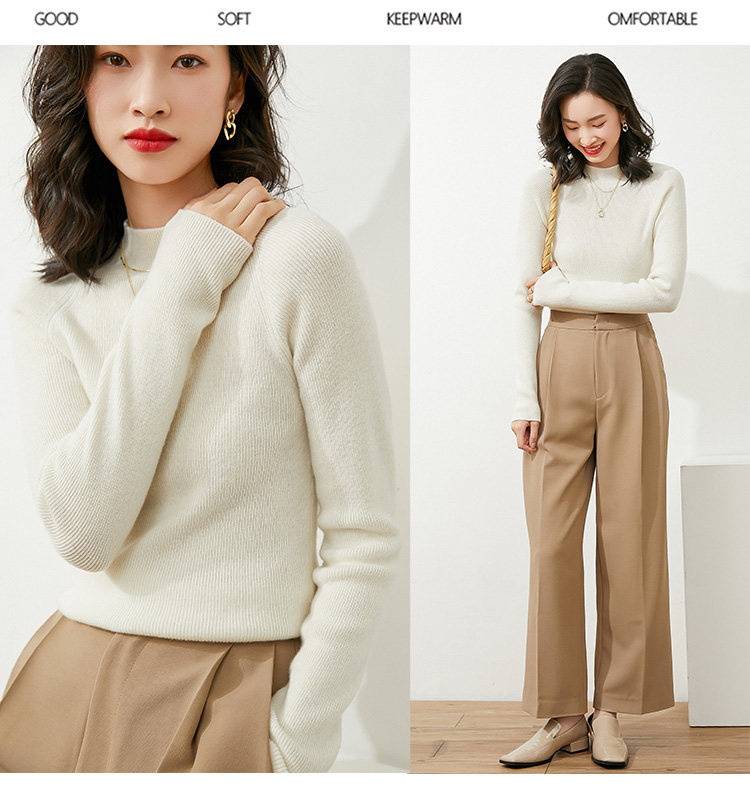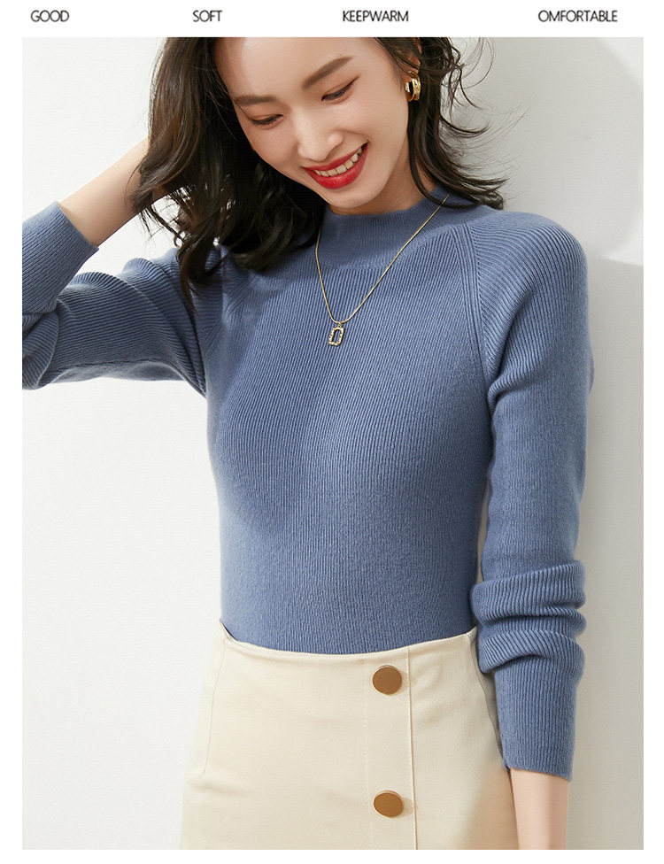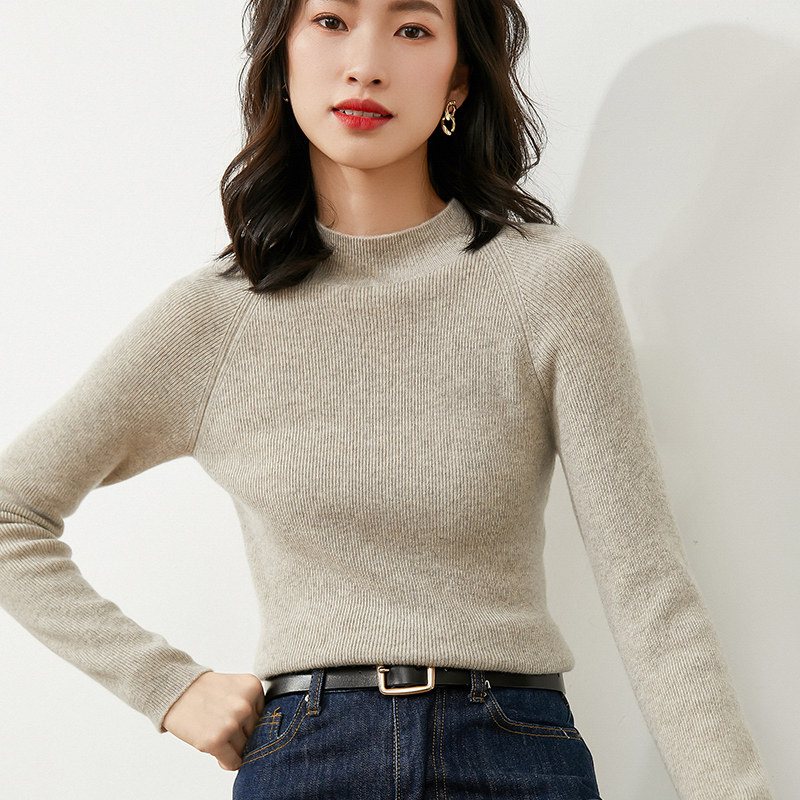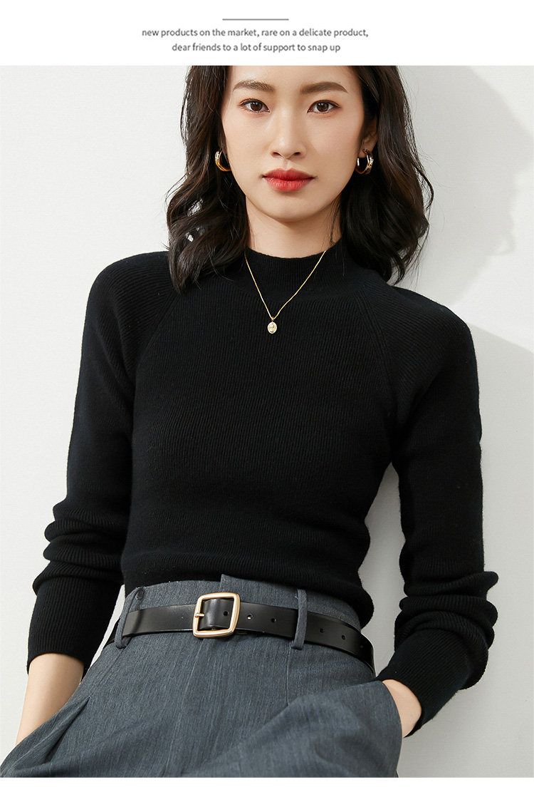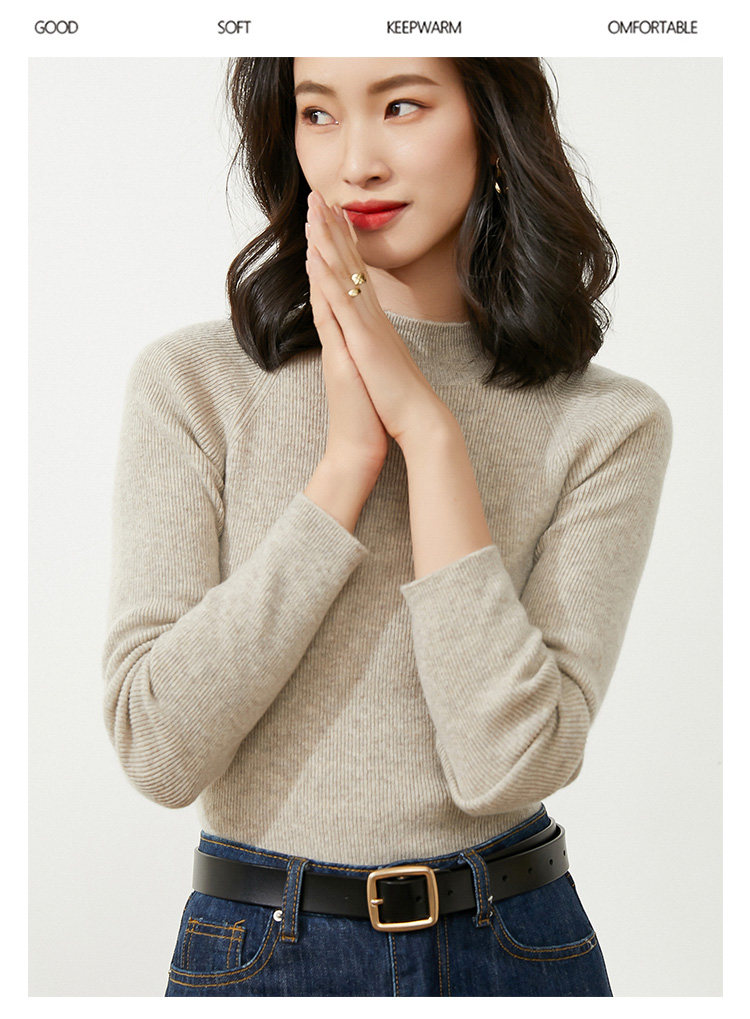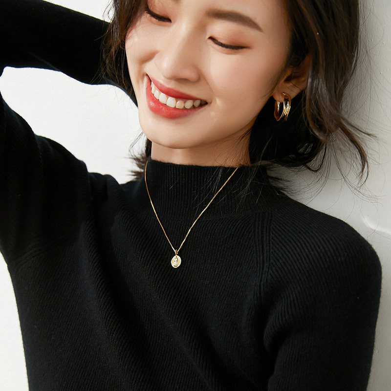 Демисезонный короткий трикотажный свитер, коллекция 2021, высокий воротник, в западном стиле, облегающий крой