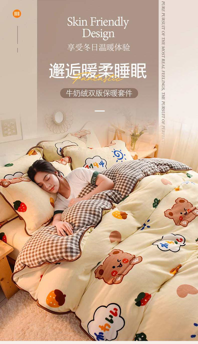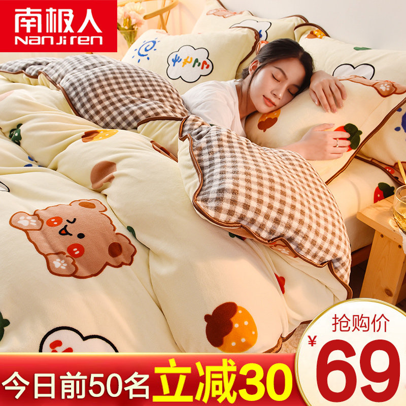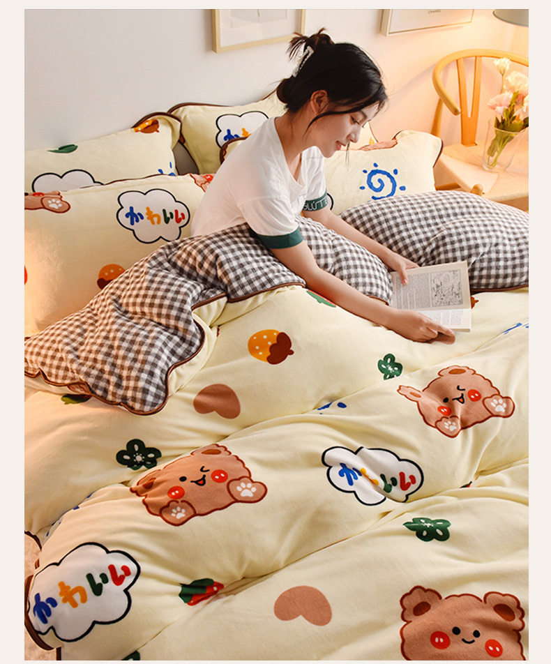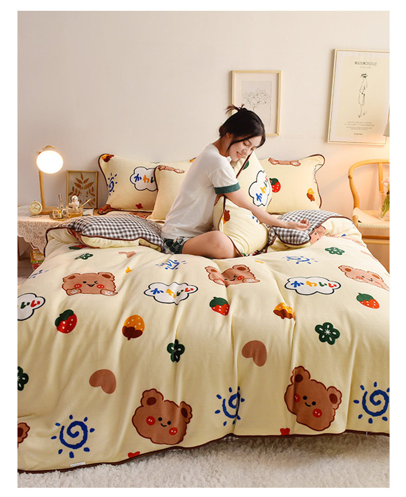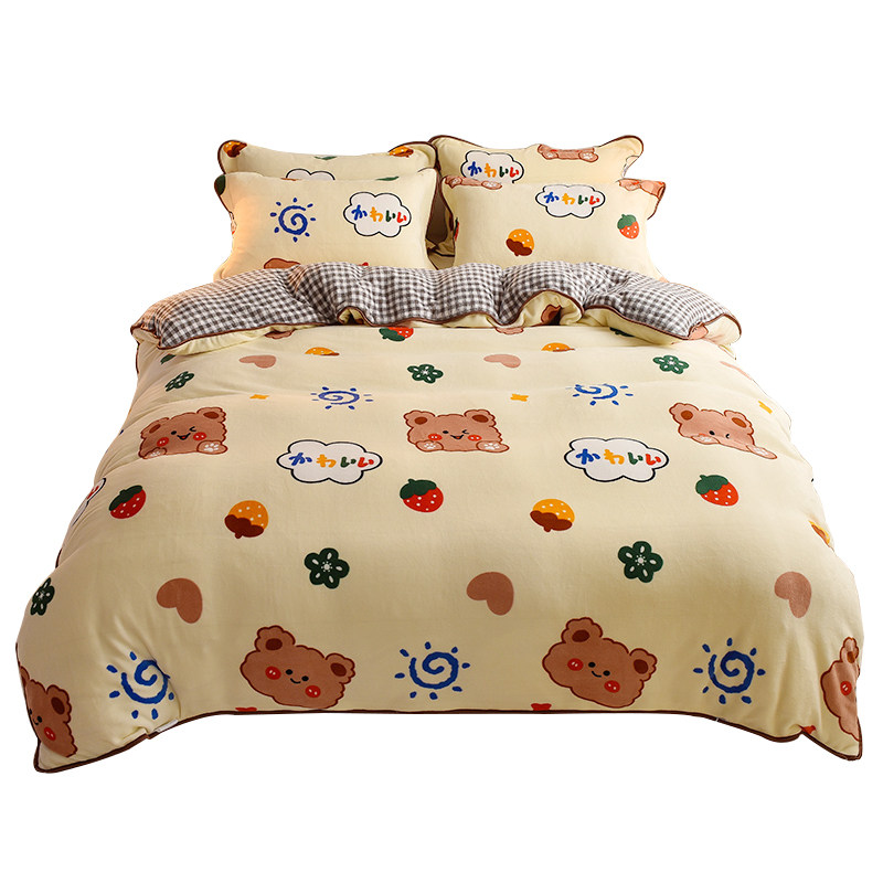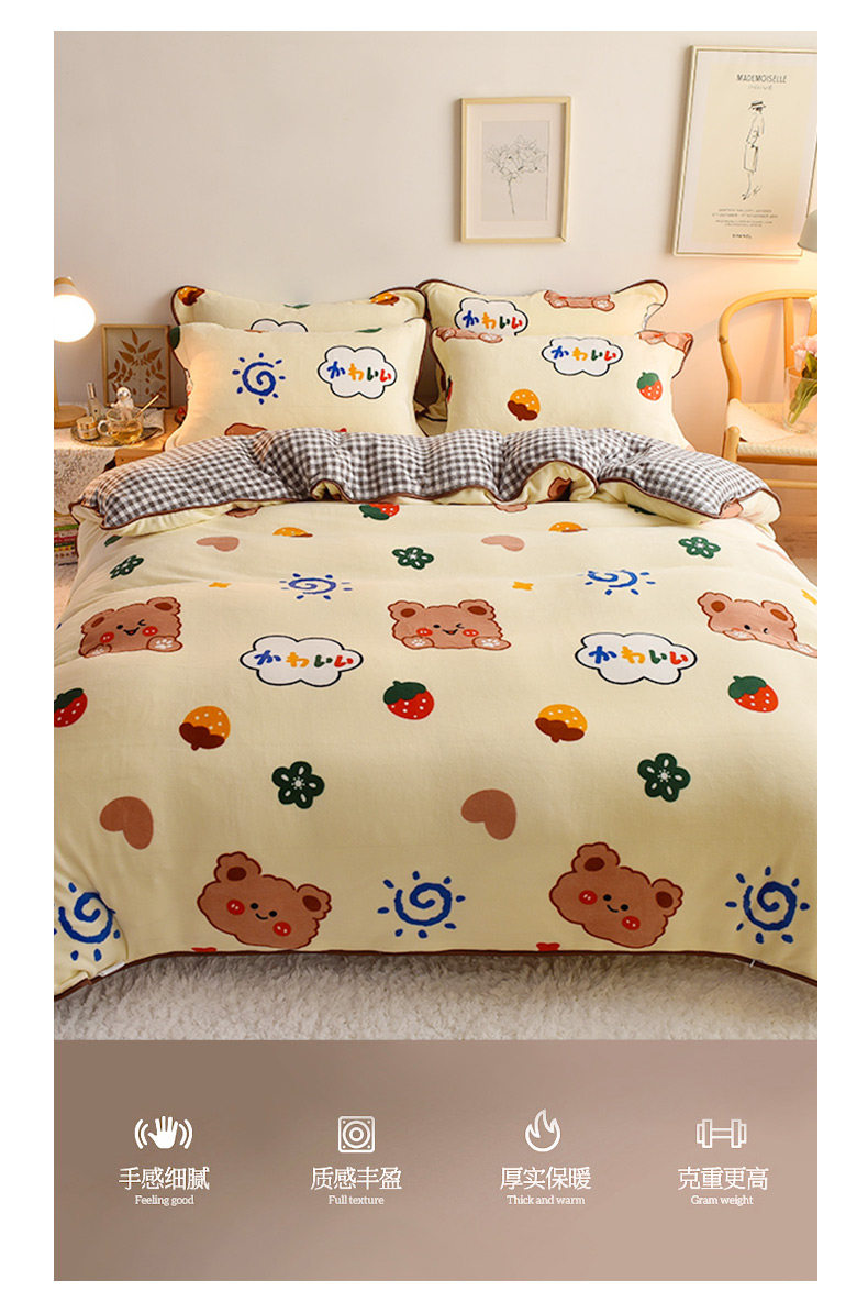 Зимний мультяшный демисезонный коралловый комплект, фланелевый двусторонний пододеяльник, простыня, 4 предмета, увеличенная толщина, 3 предмета