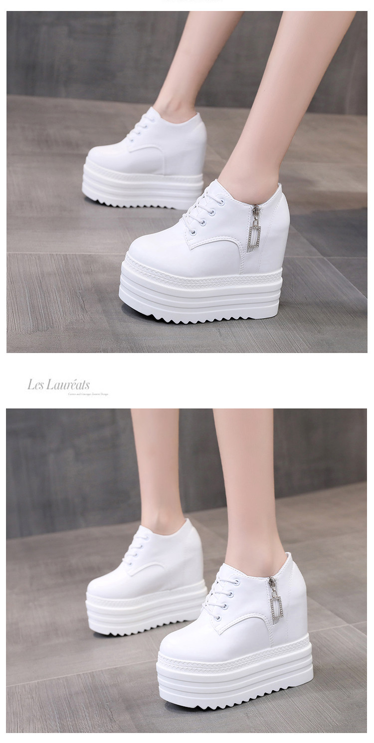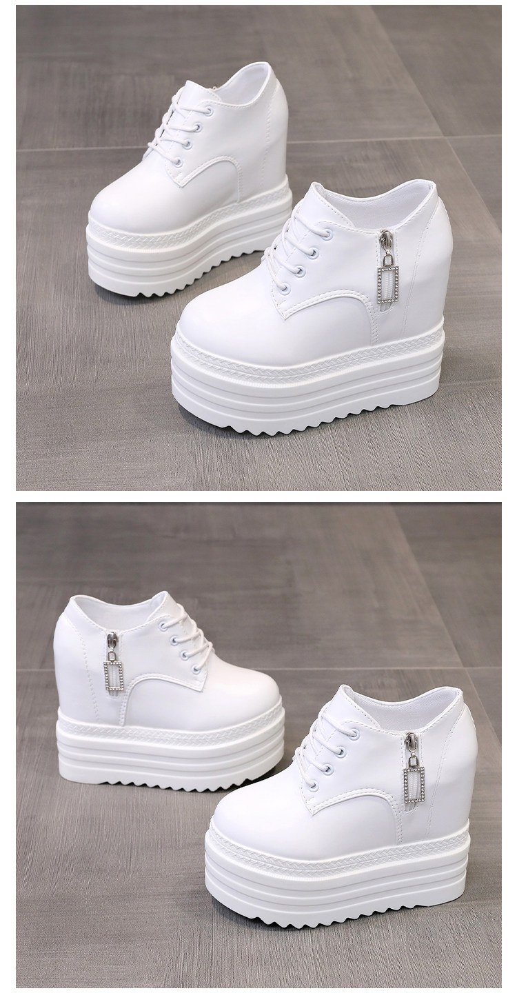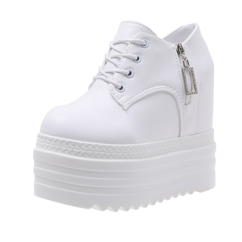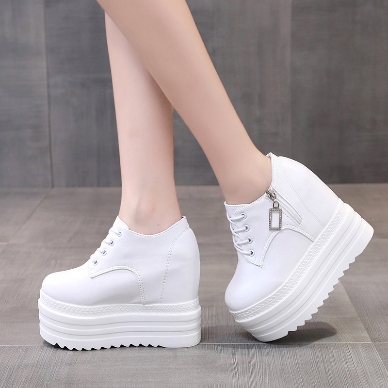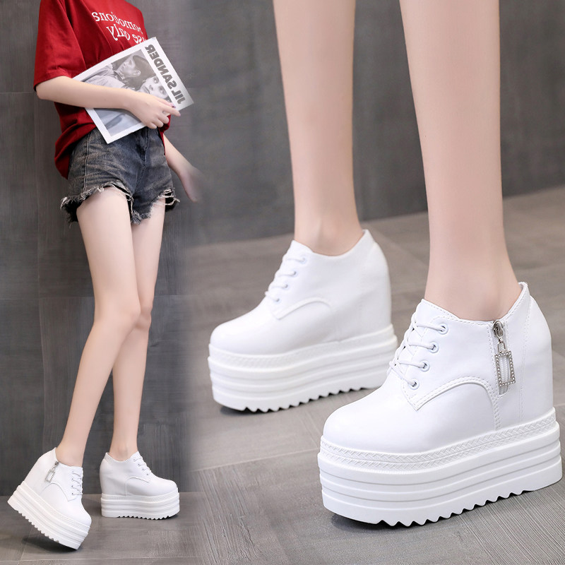 Leisure 12 см склона Ультра -высокая женская обувь корейское водонепроницаемое стол рыхлый пирог Толстый нижний белый салон.