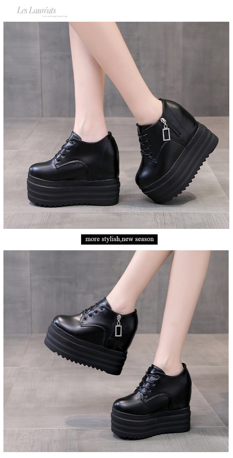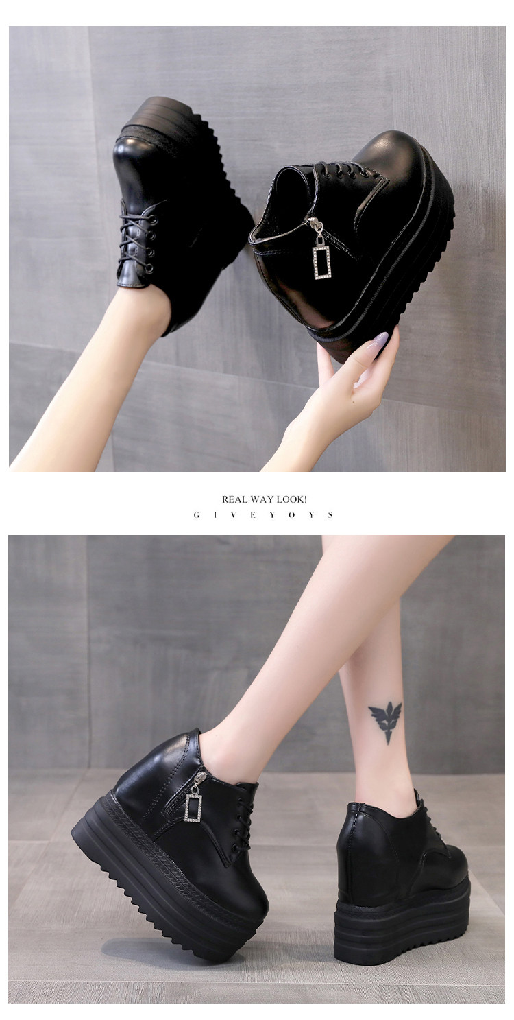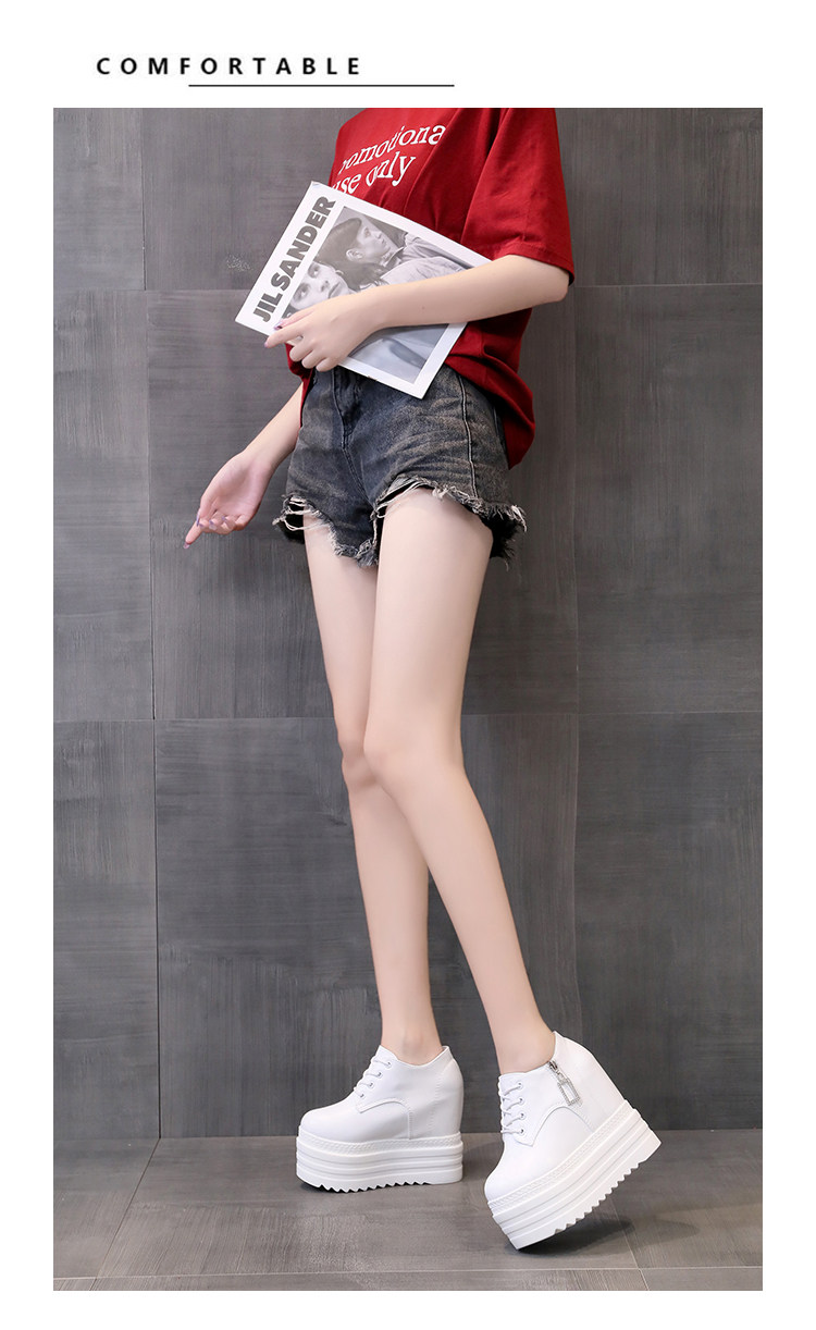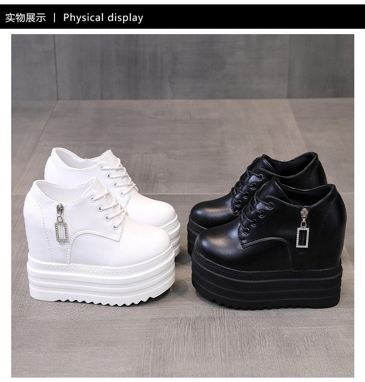 Leisure 12 см склона Ультра -высокая женская обувь корейское водонепроницаемое стол рыхлый пирог Толстый нижний белый салон.