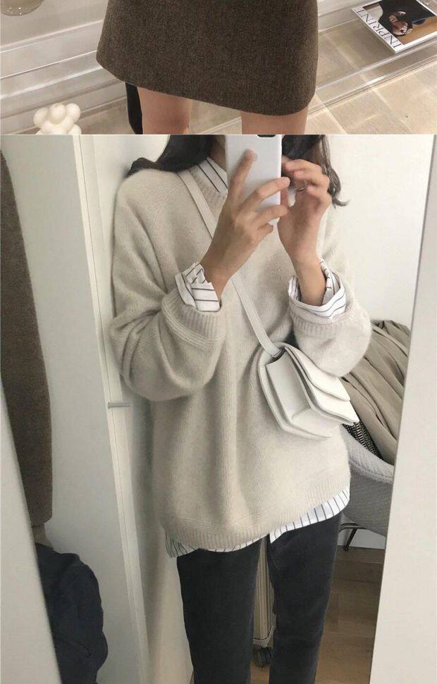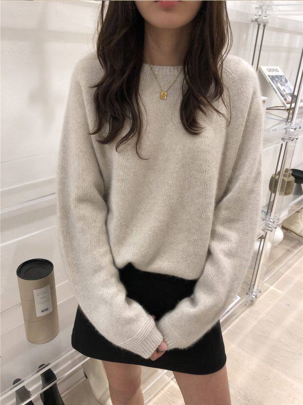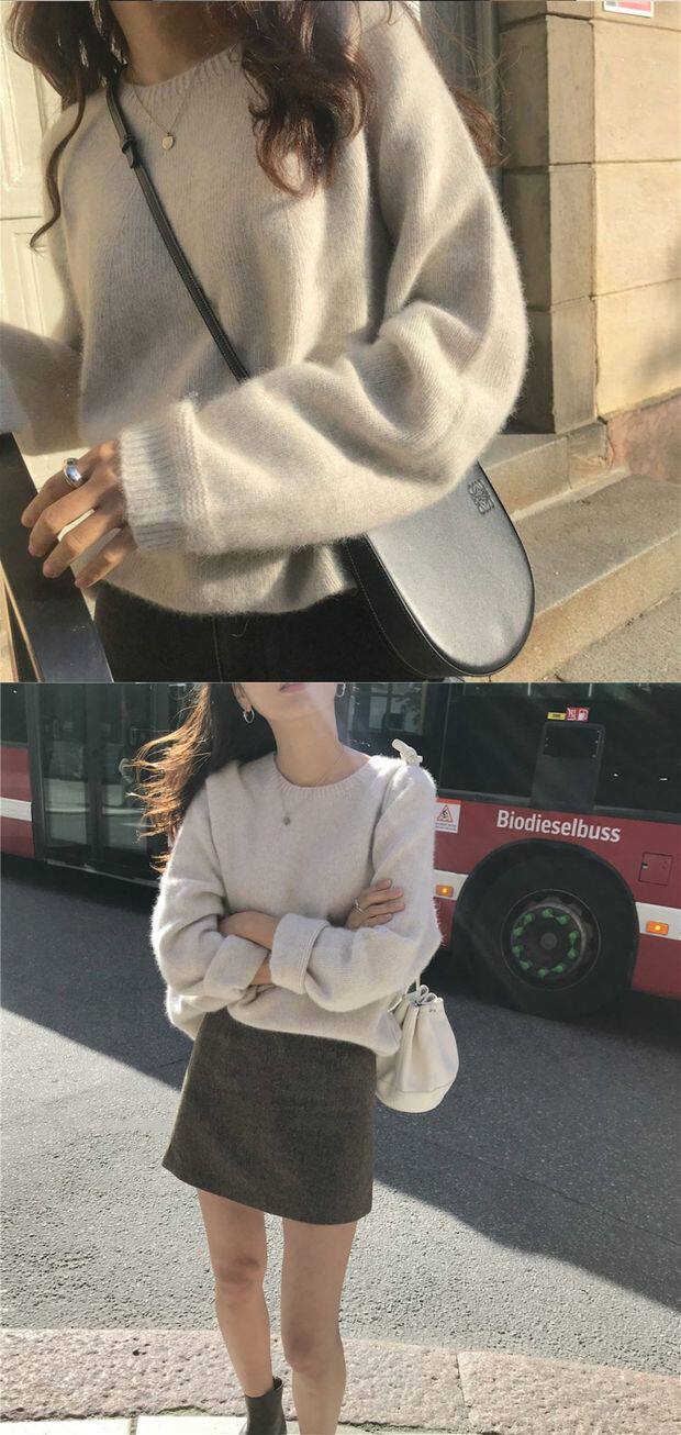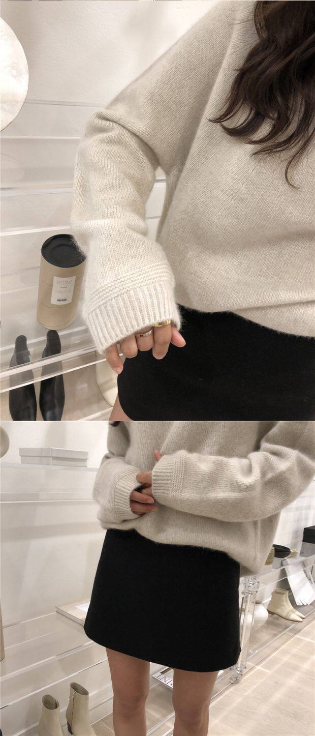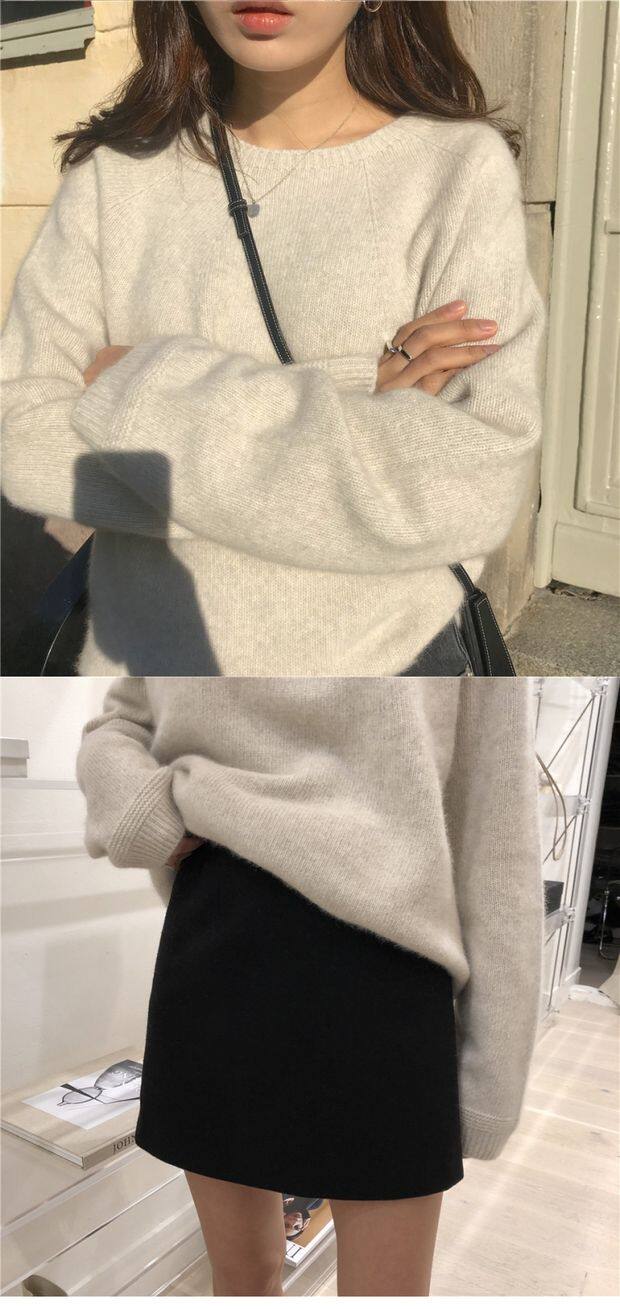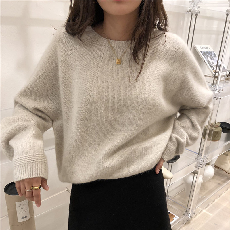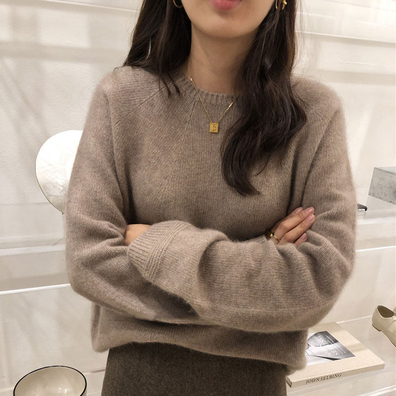 Демисезонный шерстяной короткий трикотажный кашемировый свитер с круглым воротником, оверсайз, большой размер