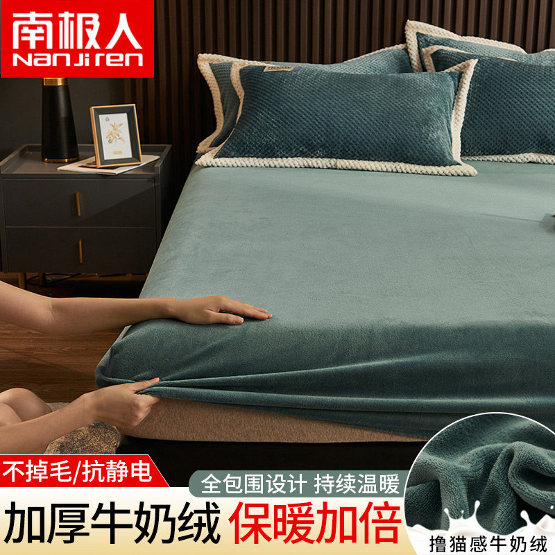 南极人 Коралловая простыня на флисовой подкладке, джинсы с начесом, бархатный матрас, покрывало, нескользящая пылезащитная крышка, фиксаторы в комплекте