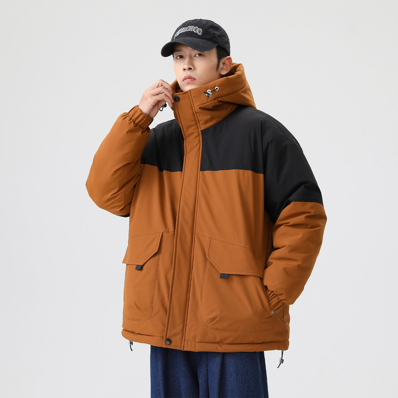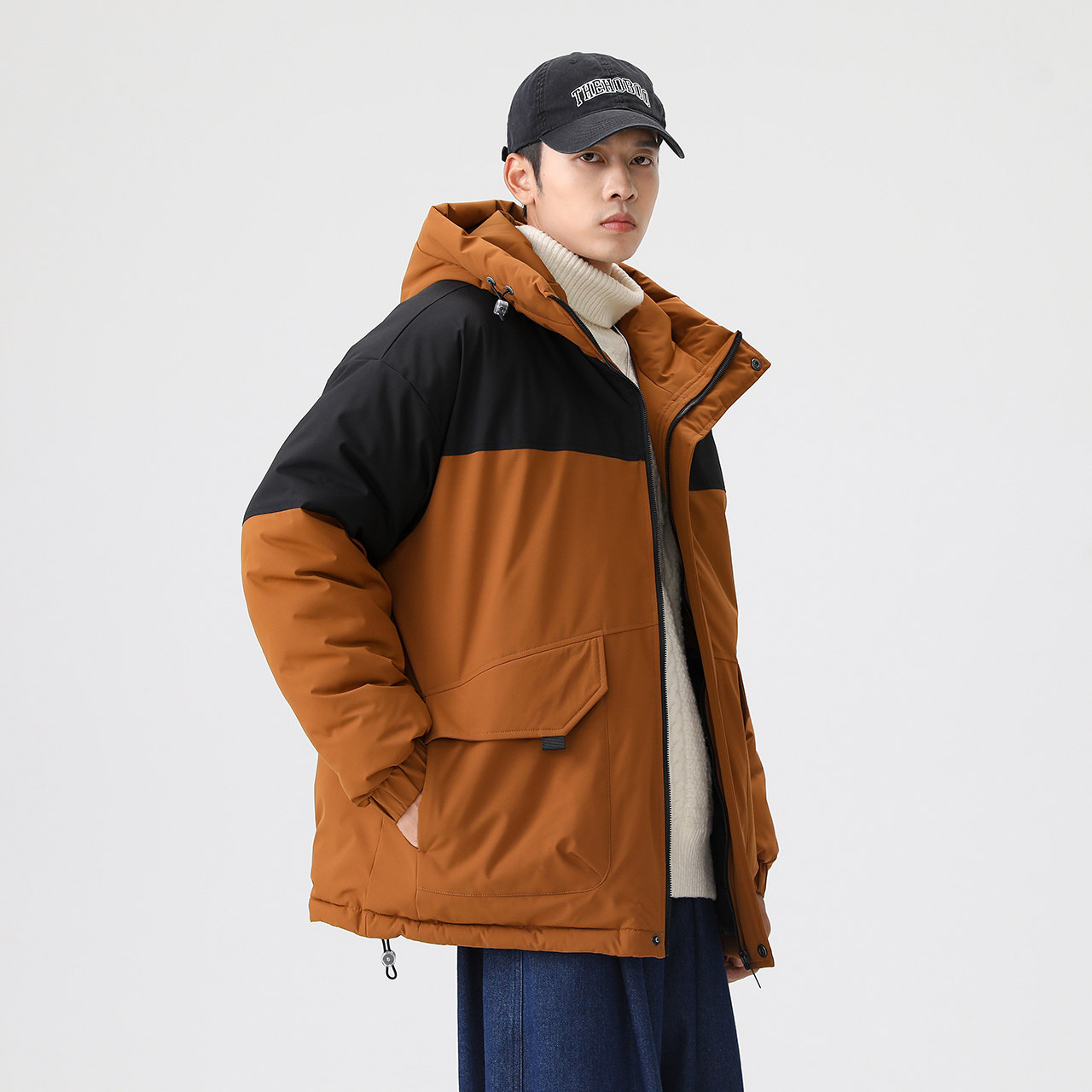 Демисезонный удерживающий тепло ветрозащитный пуховик с капюшоном, простой крой