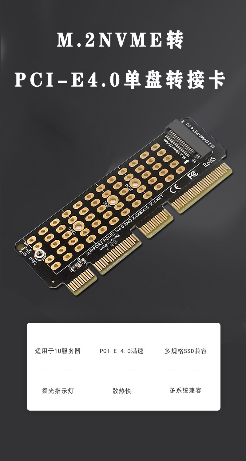 PH41-1U NVME CARD CARD M.2 в PCIE4.0 Полная скорость x4 Расширение Mkey Support 1U Сервер