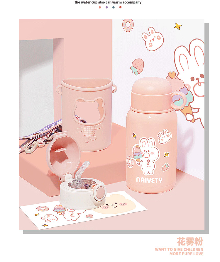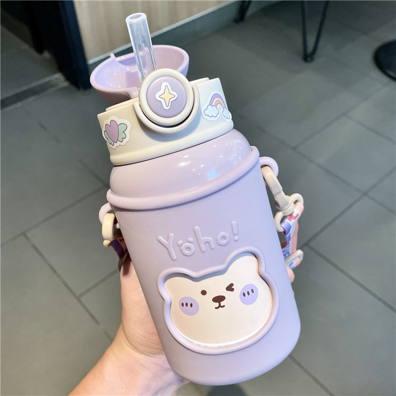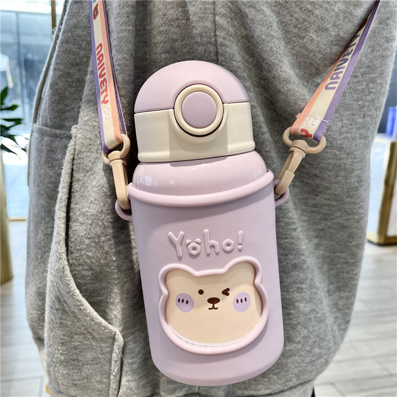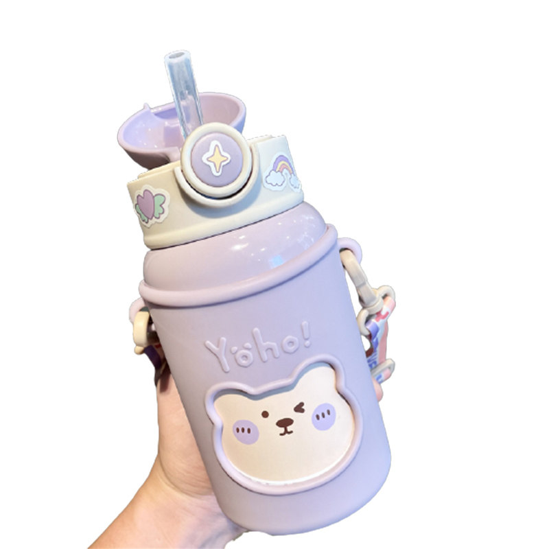 Детский термос со стаканом, милая детская трубочка для школьников, портативный ремешок для сумки для детского сада подходит для мужчин и женщин, чайник