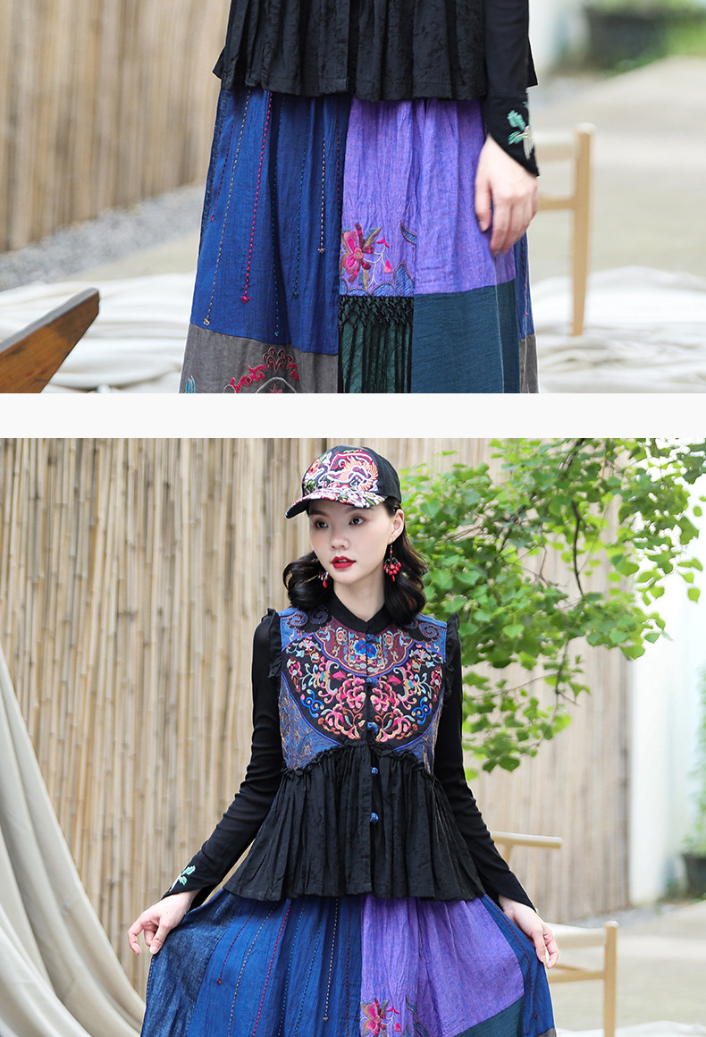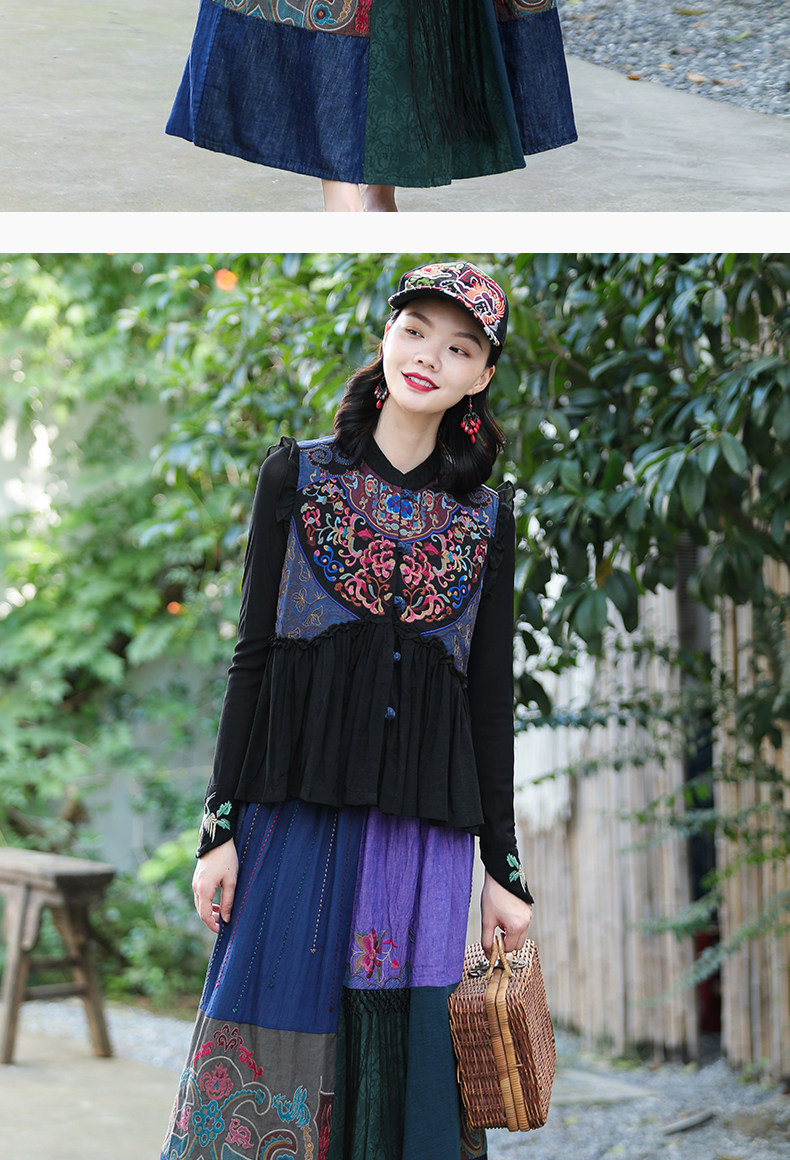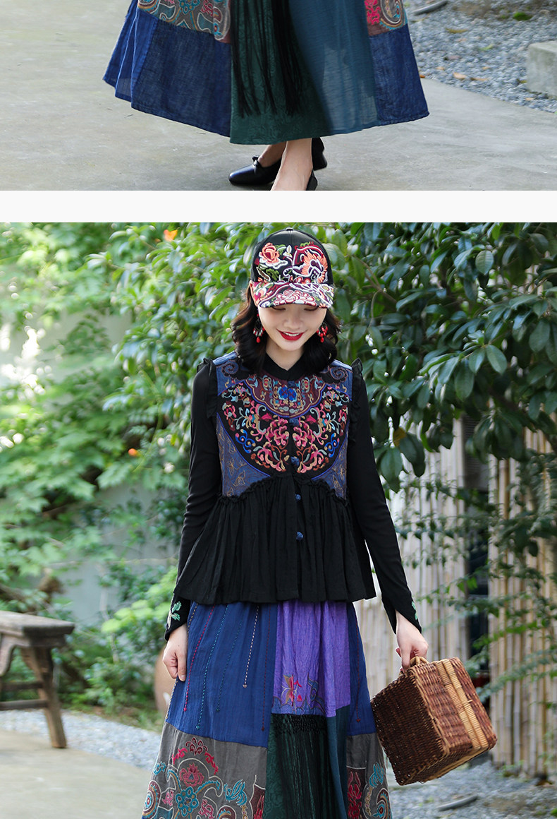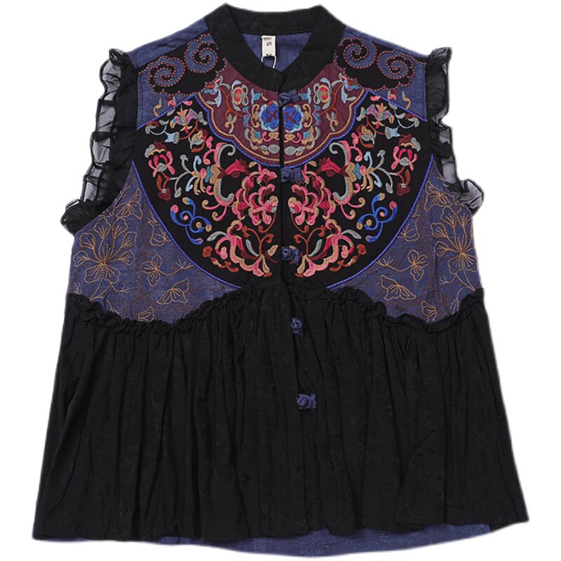 Этнический ретро жилет, майка без рукавов, футболка, нагрудник, куртка, коллекция 2021, этнический стиль, с вышивкой