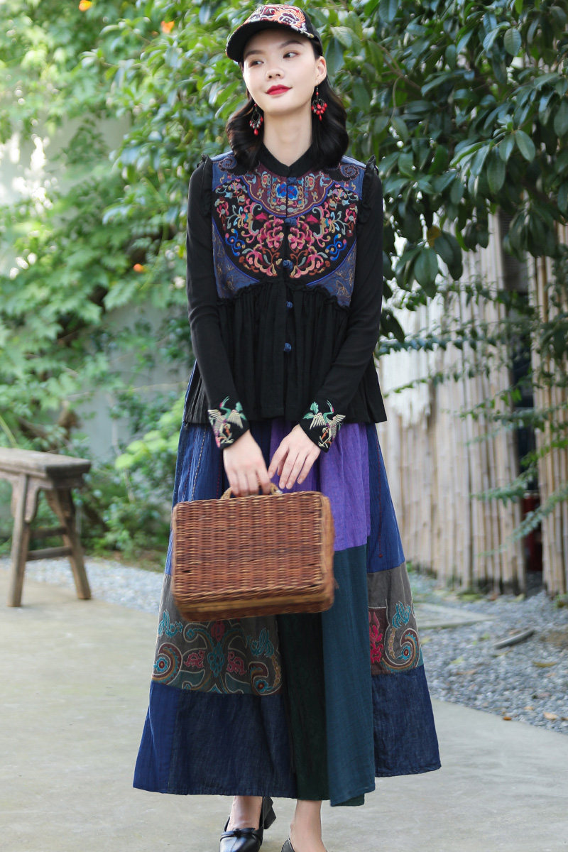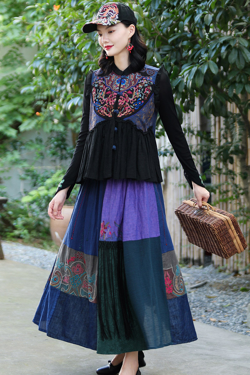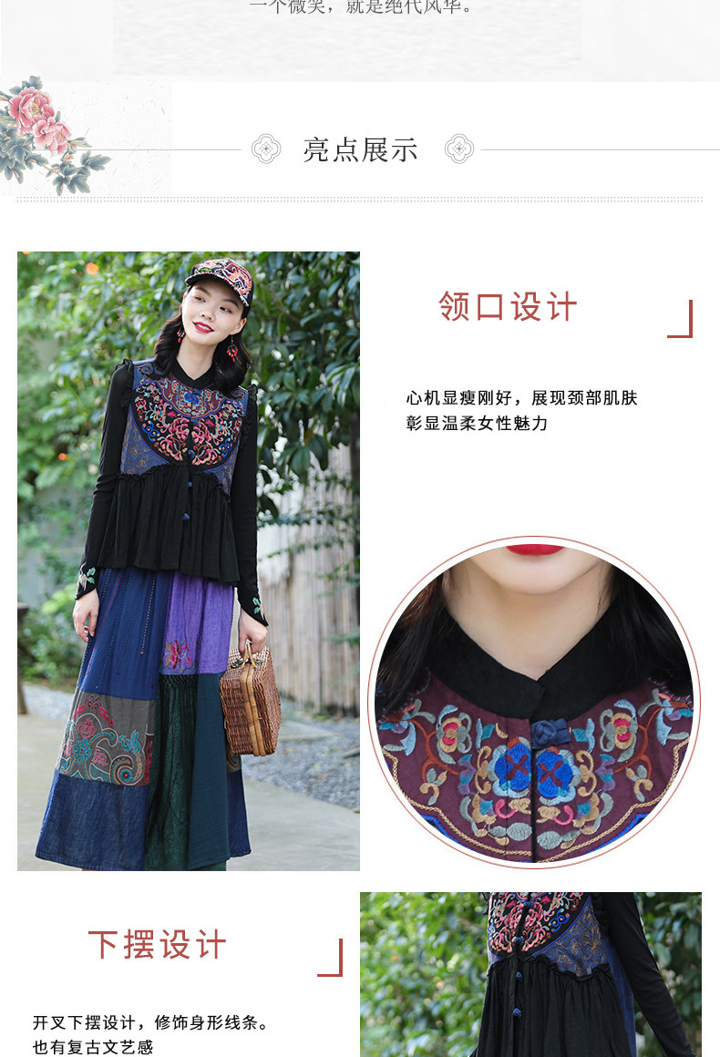 Этнический ретро жилет, майка без рукавов, футболка, нагрудник, куртка, коллекция 2021, этнический стиль, с вышивкой