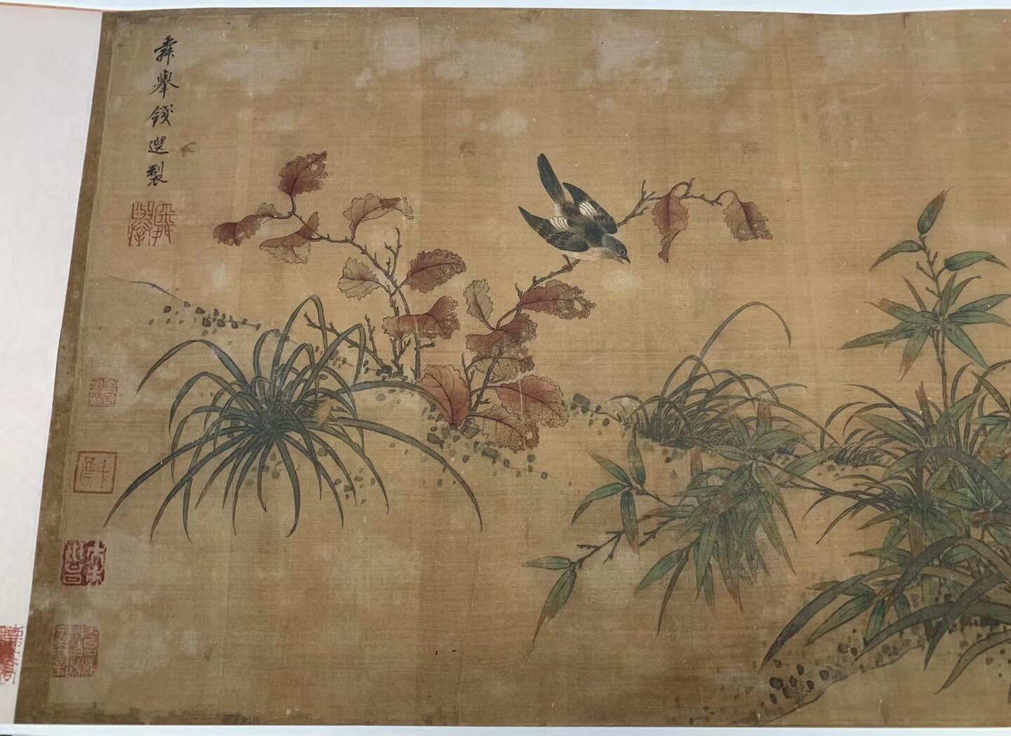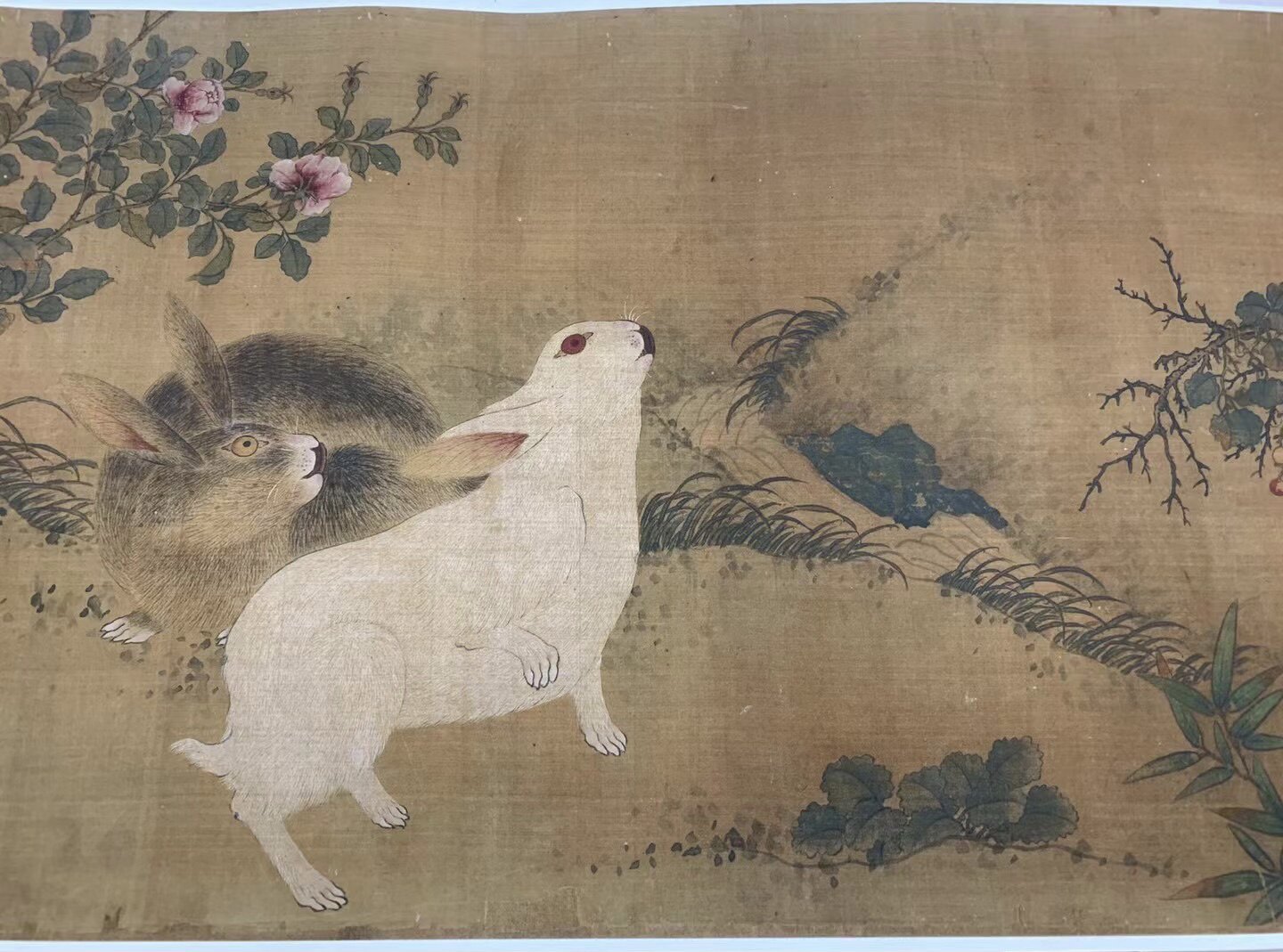 Картина Цянь Сюаня «Нефритовый кролик и птица», жикле, репродукция высокой четкости, длина 34 см, ширина 250 см.