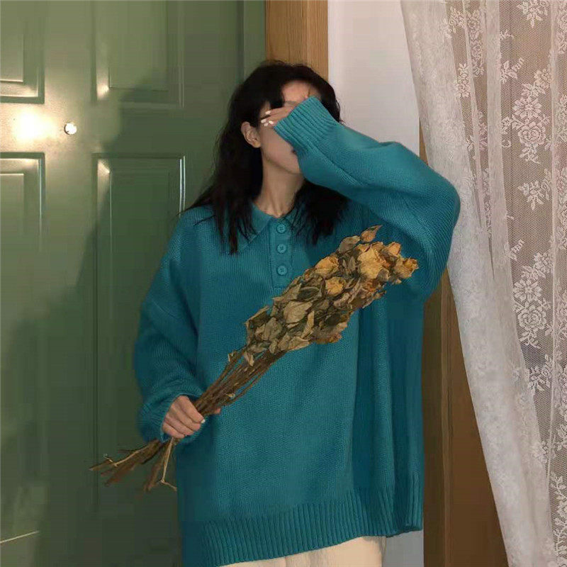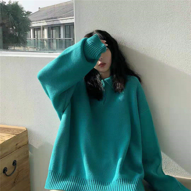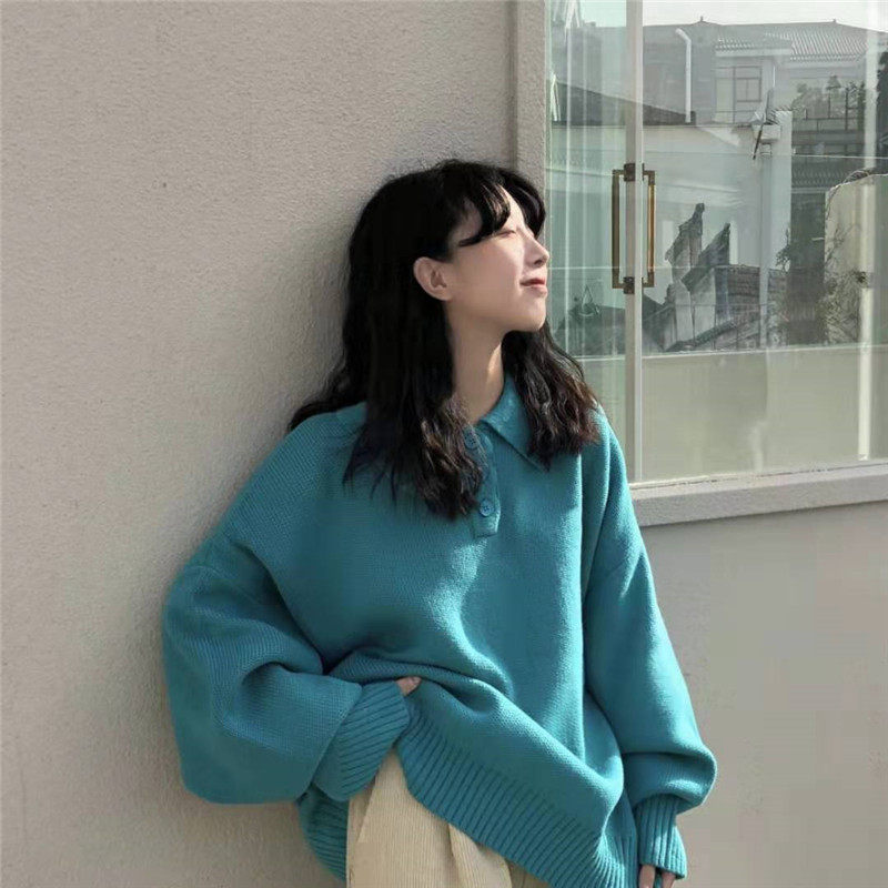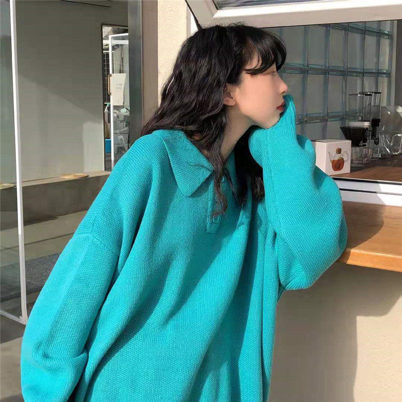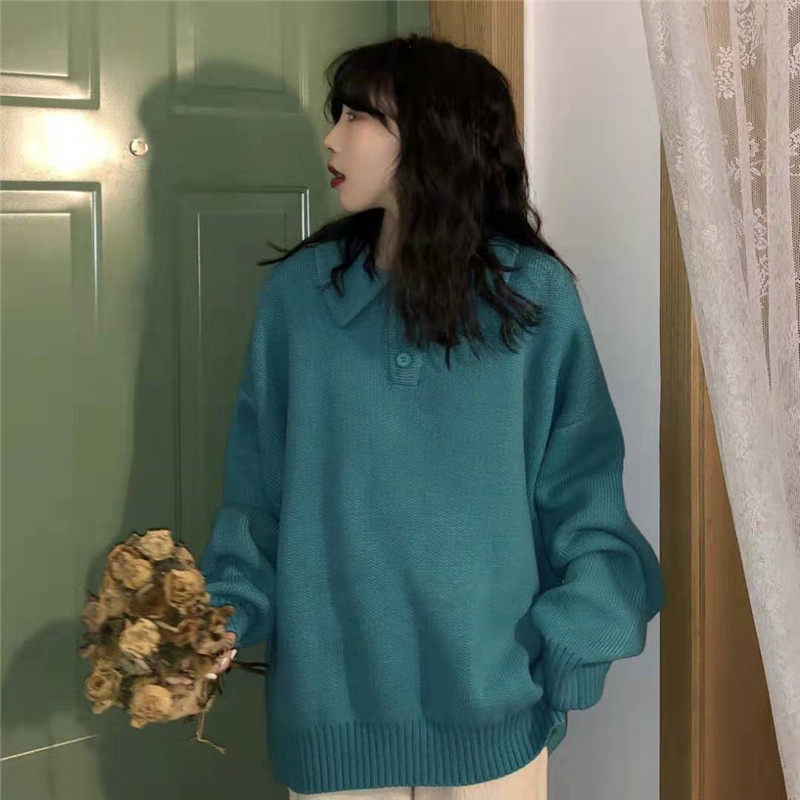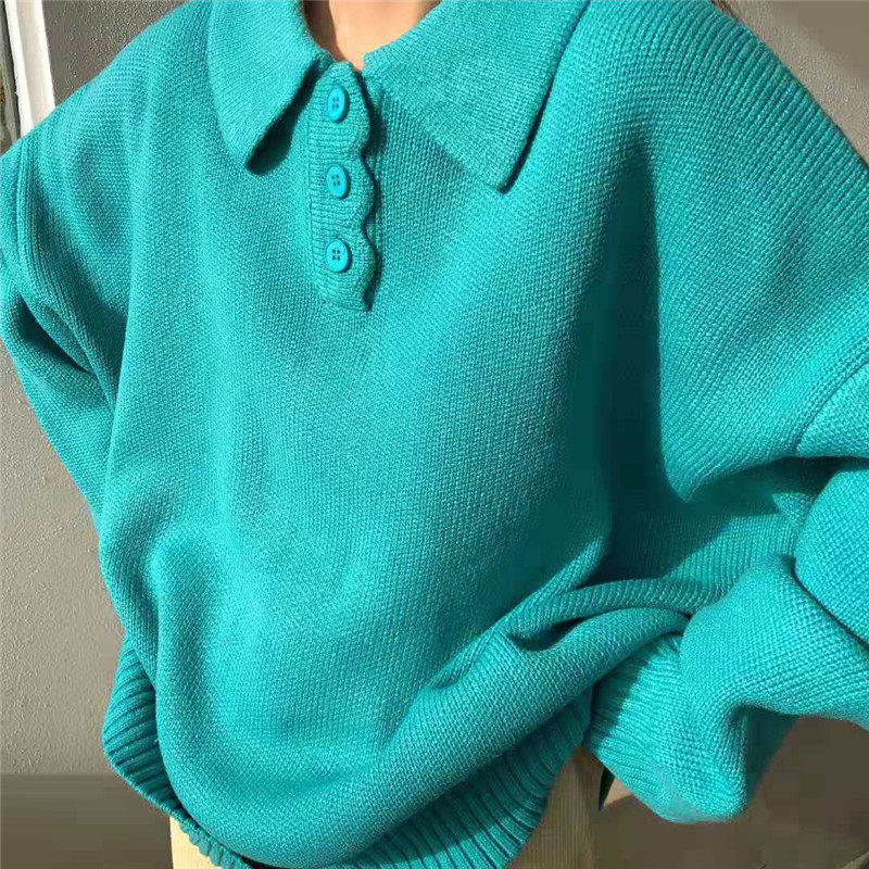 Осенний ретро японский дизайнерский свитер, коллекция 2021, оверсайз, воротник поло, тренд сезона