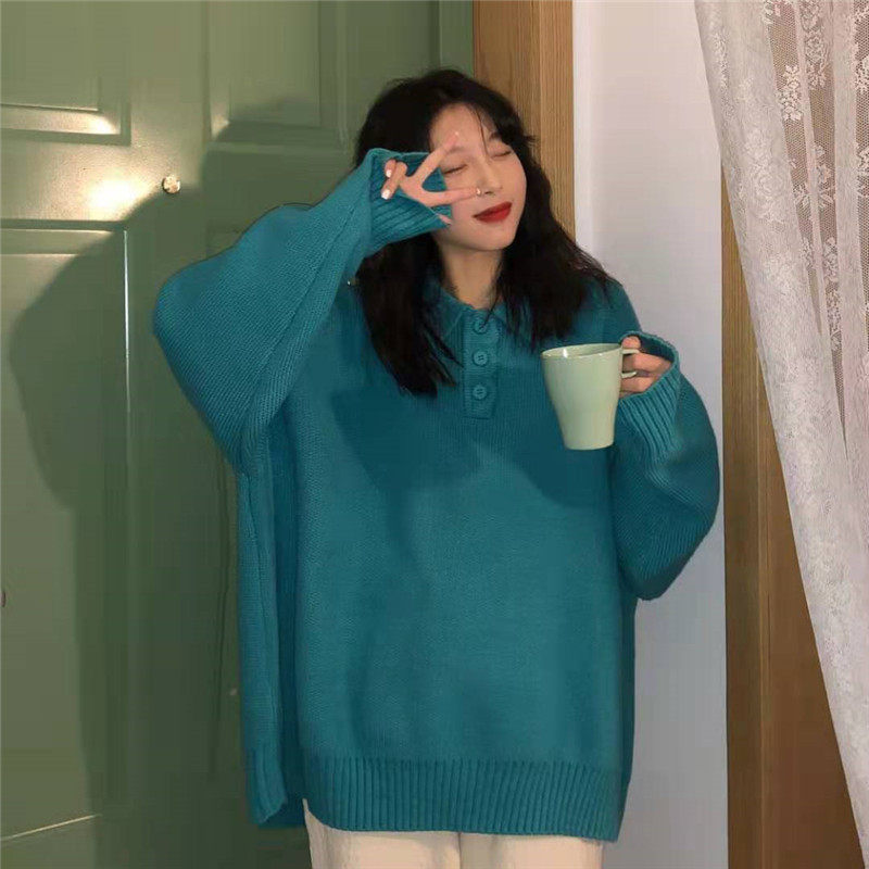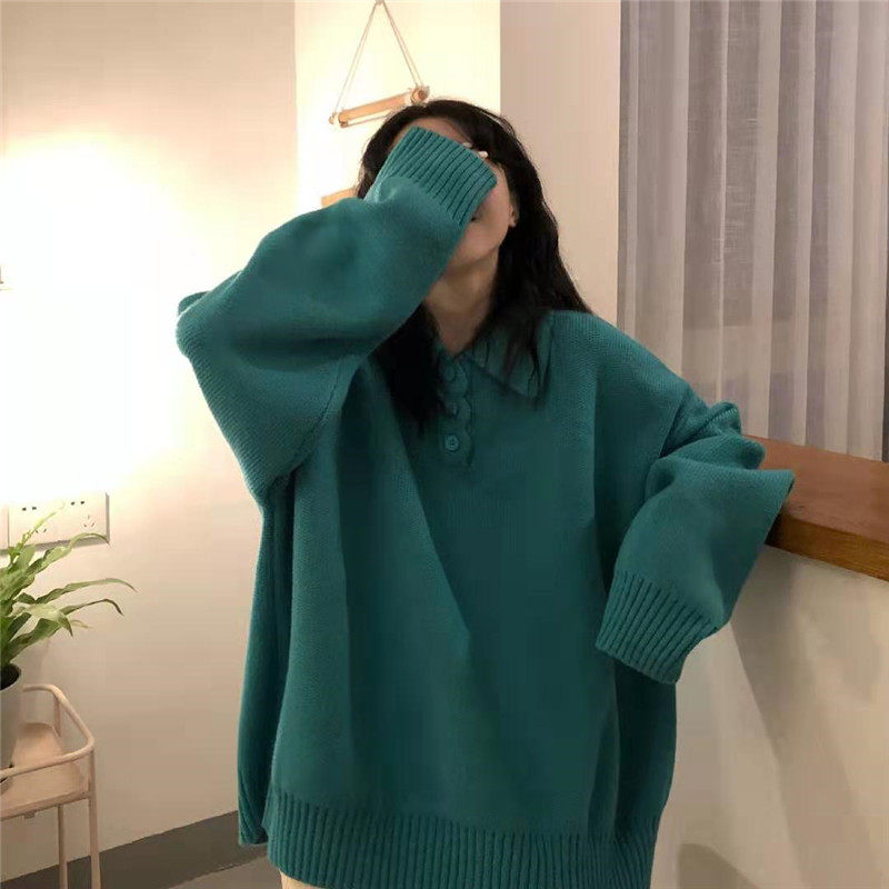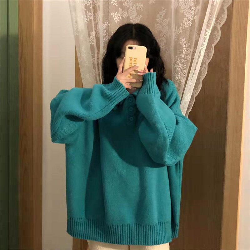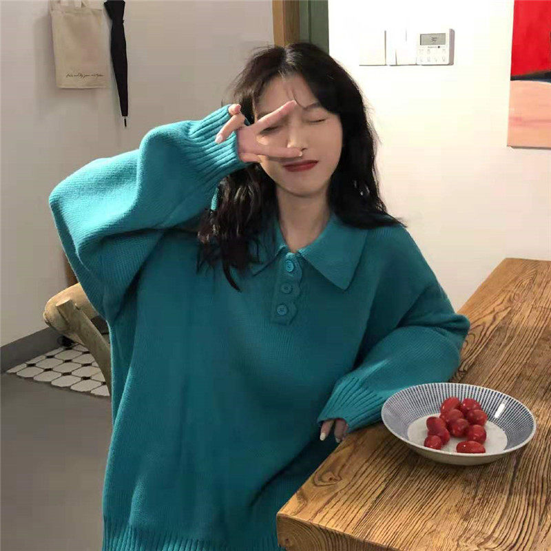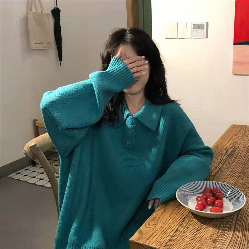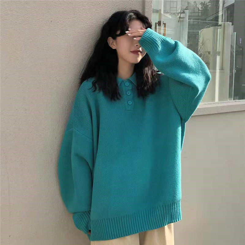 Осенний ретро японский дизайнерский свитер, коллекция 2021, оверсайз, воротник поло, тренд сезона