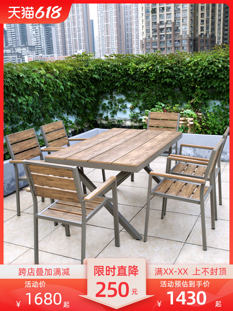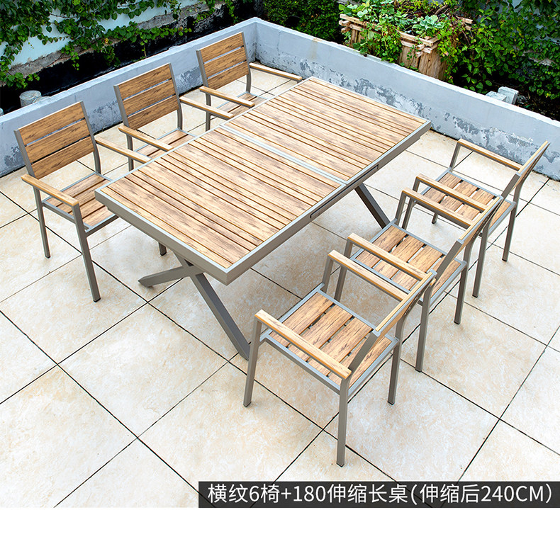 Наружный пластиковый деревянный стол стул сад сад балкон -алюминиевые сплавные столы и стул набор европейская простота деревянные телескопические столы и стулья