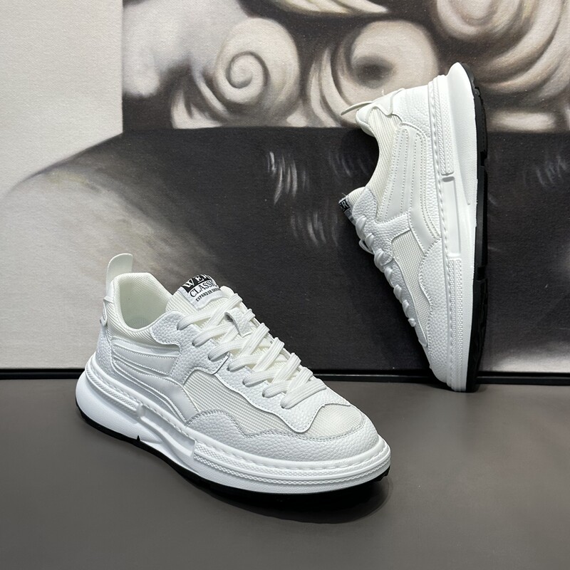 Мужская обувь, весенняя бархатная новинка 2024, кожаные белые туфли, универсальные мужские модные брендовые туфли для спорта и отдыха на толстой подошве для папы