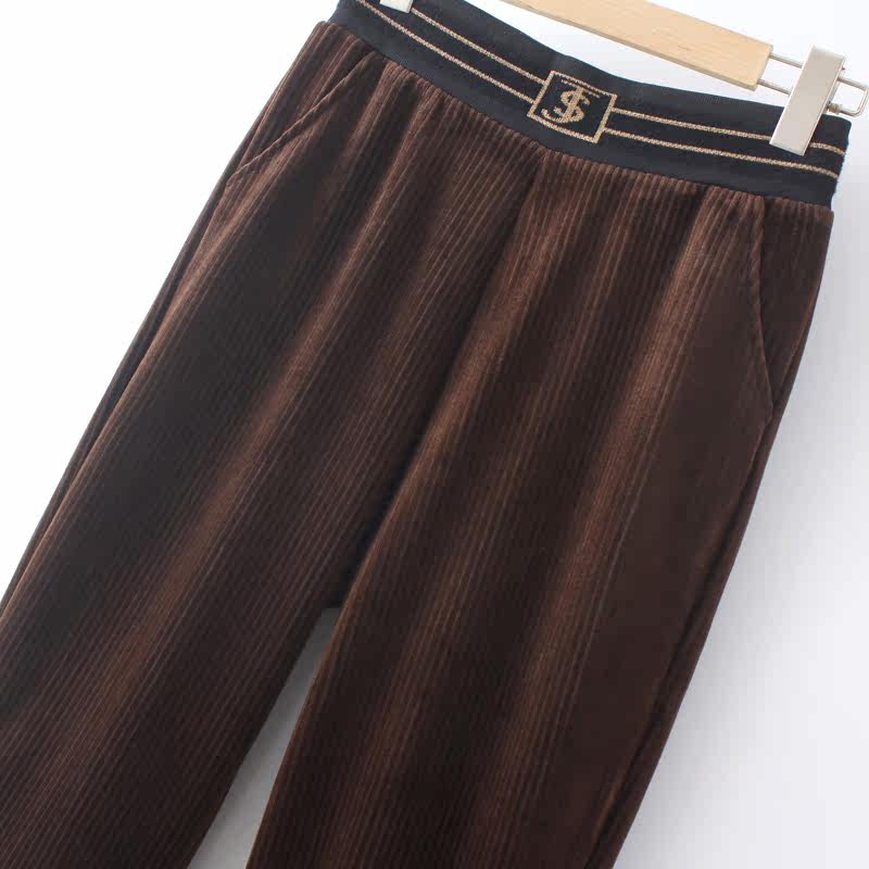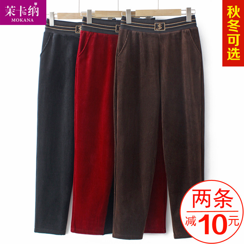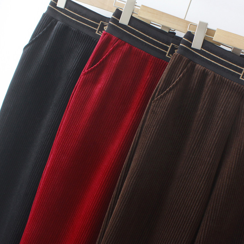 Осенние вельветовые утепленные демисезонные штаны для матери для отдыха, оверсайз, для среднего возраста, свободный прямой крой