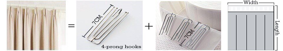 Крюка занавески (ширина 7 см (ширина 7 см) сшивается на верхней части штор, подходящих для штор -шеста или дорожных путей.